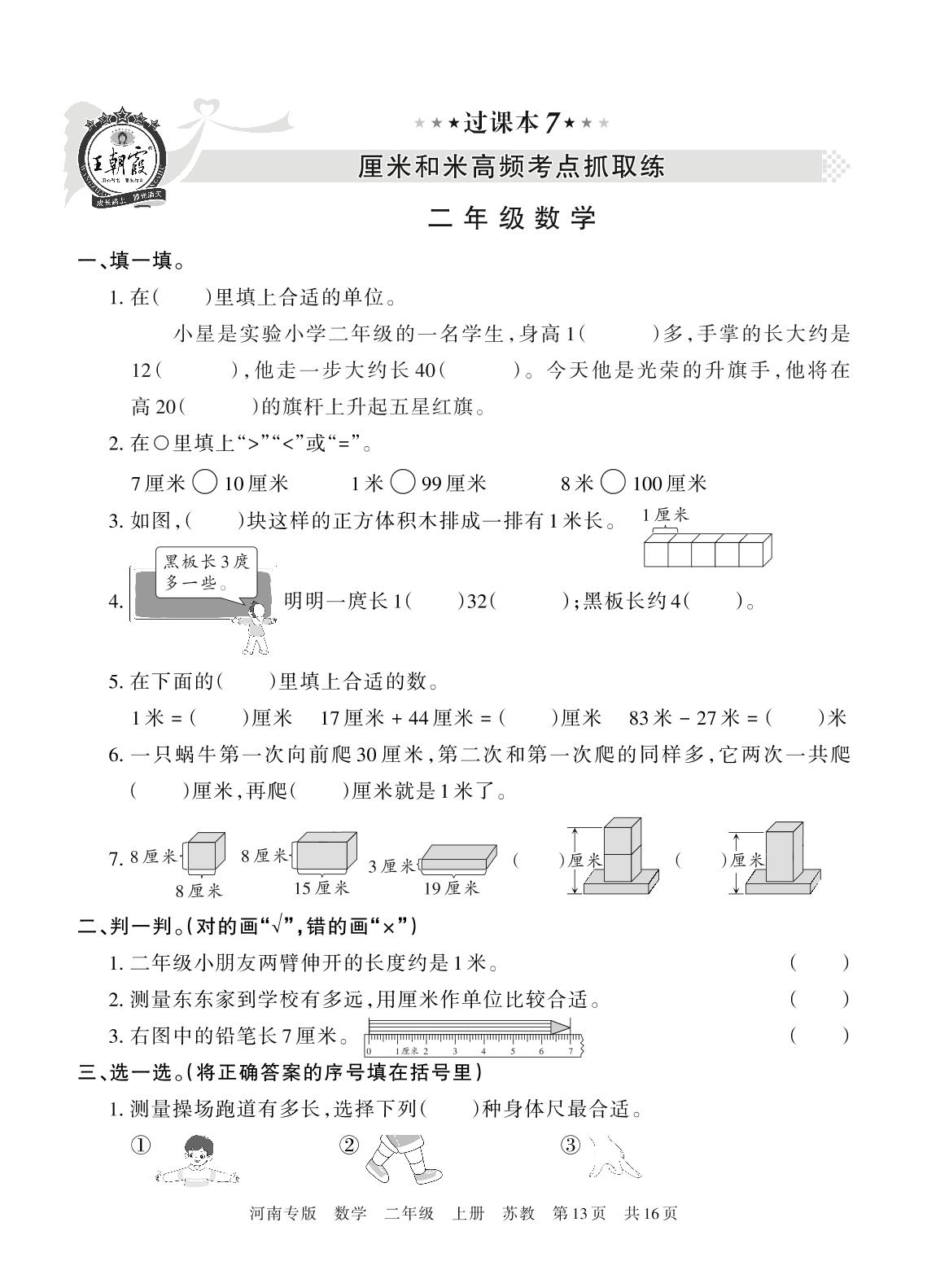 王朝霞期末过课本——厘米和米高频考点抓取练二年级上册数学(苏教版)_R211225164631912【7】