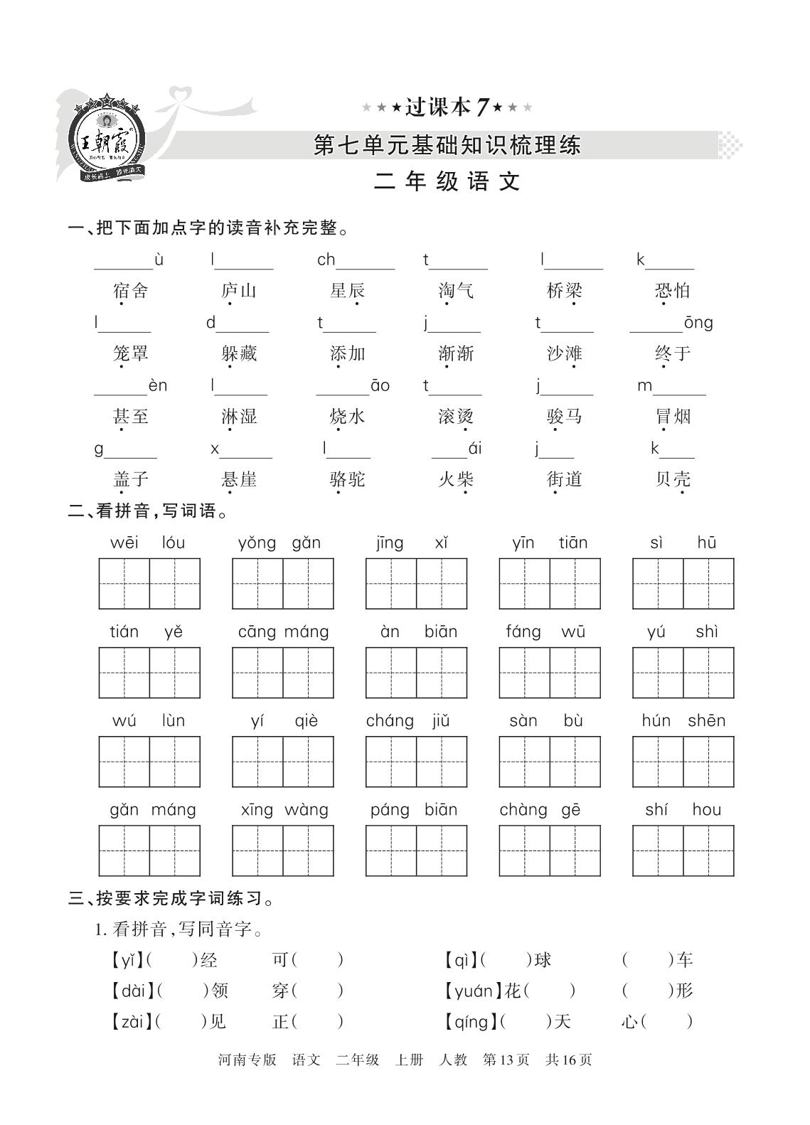 王朝霞期末过课本——第七单元基础知识梳理练二年级上册语文(人教版)_R211225171552003【7】