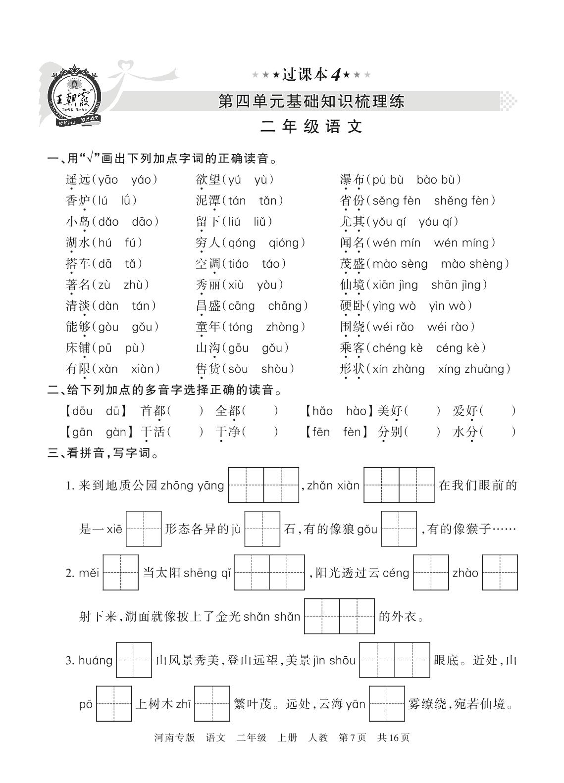 王朝霞期末过课本——第四单元基础知识梳理练二年级上册语文(人教版)_R211225171552316【4】