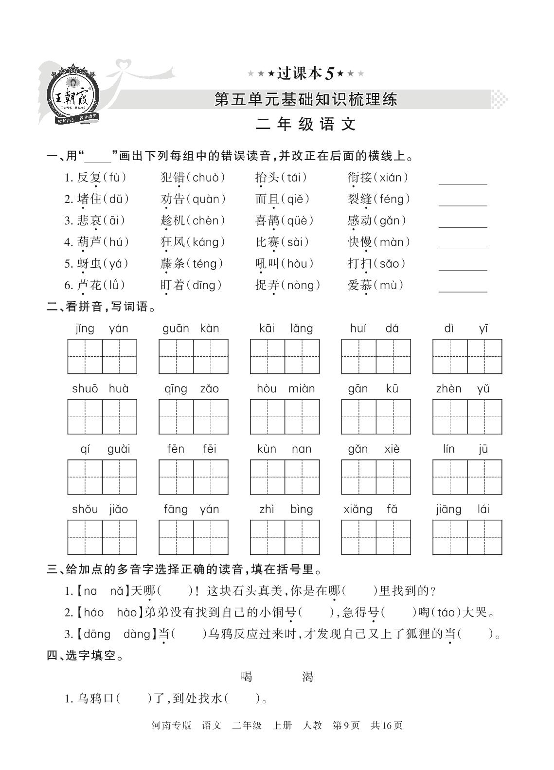 王朝霞期末过课本——第五单元基础知识梳理练二年级上册语文(人教版)_R211225171552704【5】