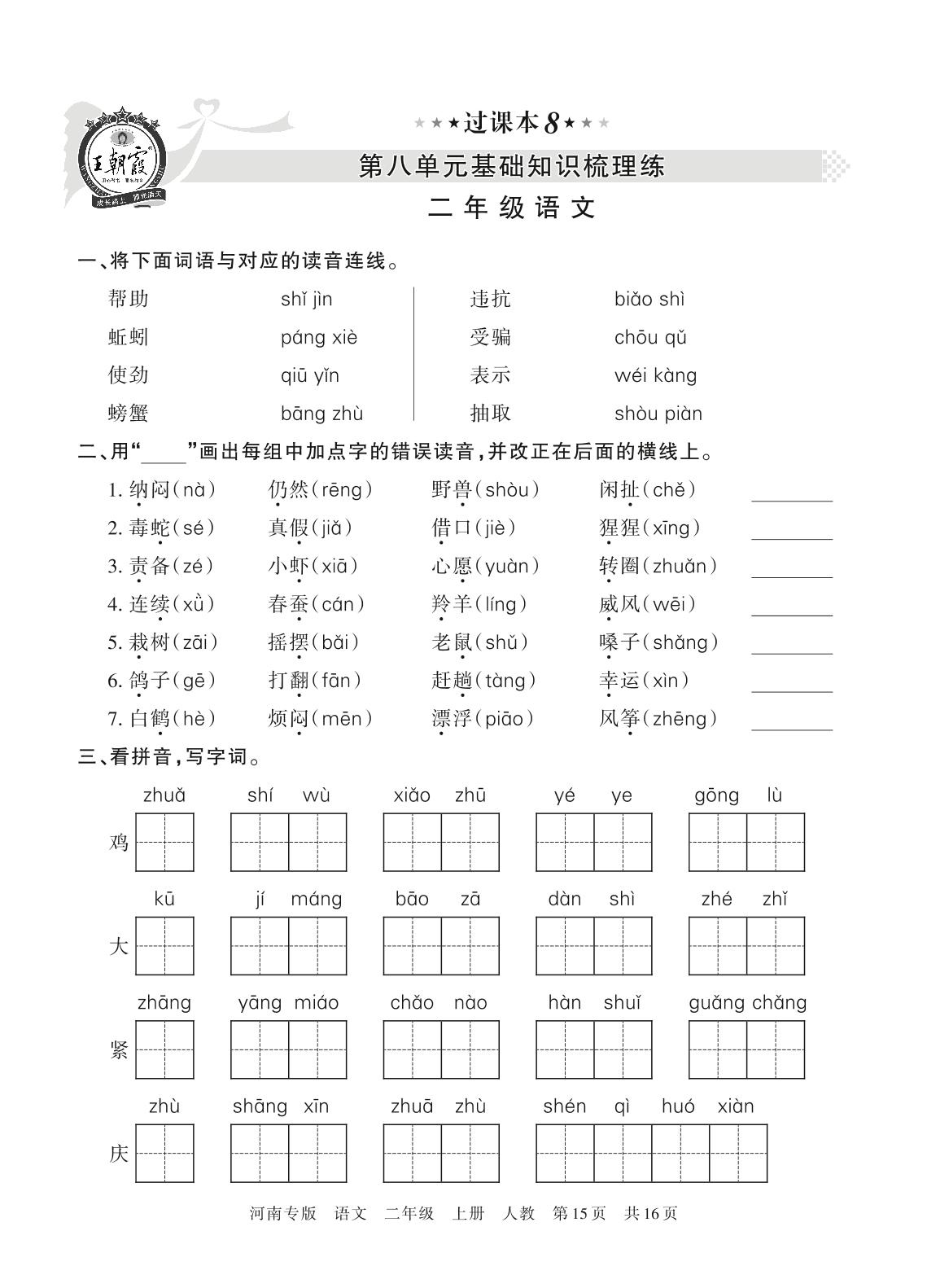 王朝霞期末过课本——第八单元基础知识梳理练二年级上册语文(人教版)_R211225171552819【8】