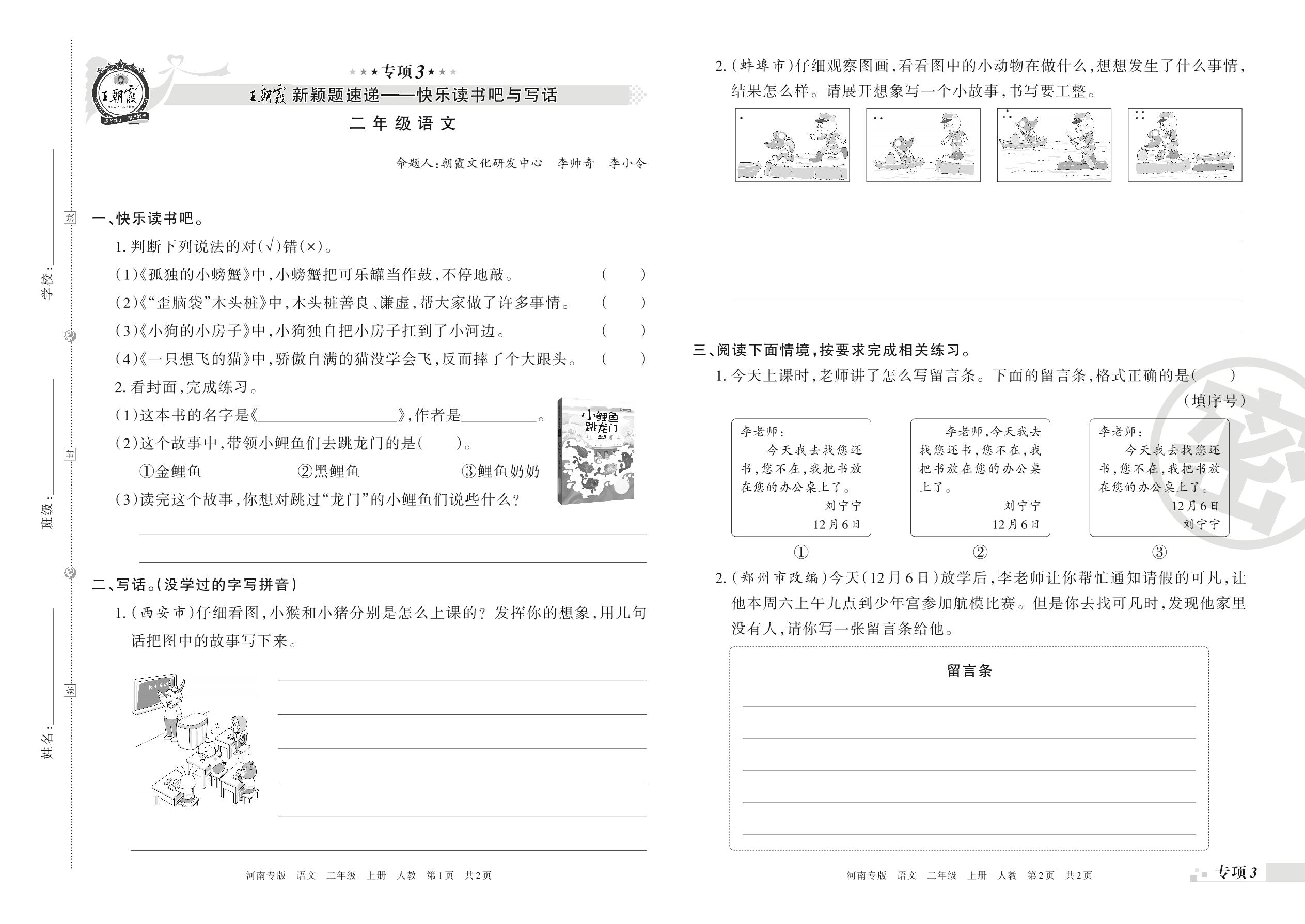 王朝霞期末专项卷——新颖题速递:快乐读书吧与写话二年级上册语文(人教版)_R211225171552629【3】