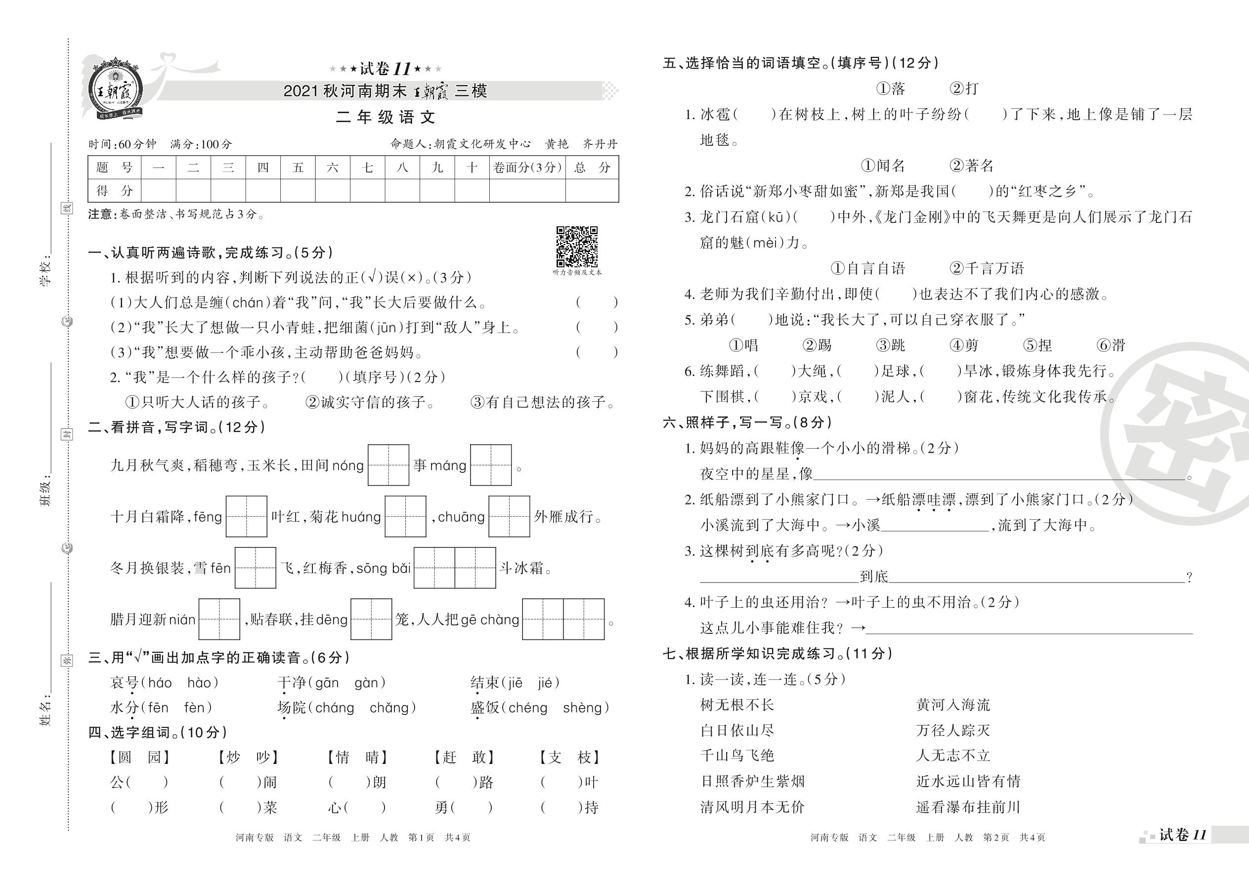 王朝霞期末模拟卷二年级上册语文(人教版)_R211225171553379【11】