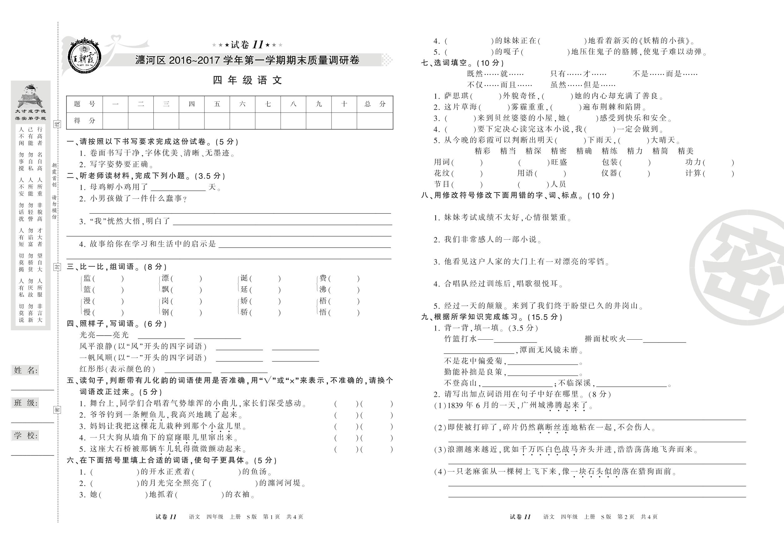 2016-2017学年第一学期洛阳市瀍河区四年级语文试卷(S版)【11】