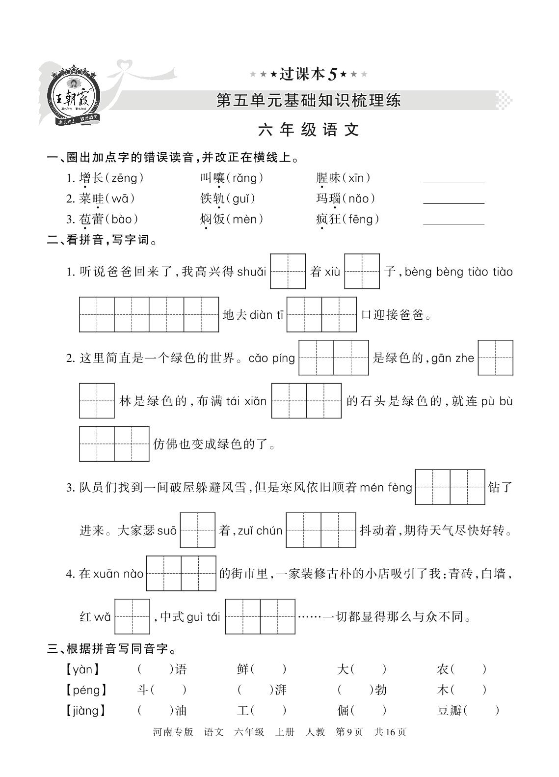 王朝霞期末过课本——第五单元基础知识梳理练六年级上册语文(人教版)_R211225175211547【5】