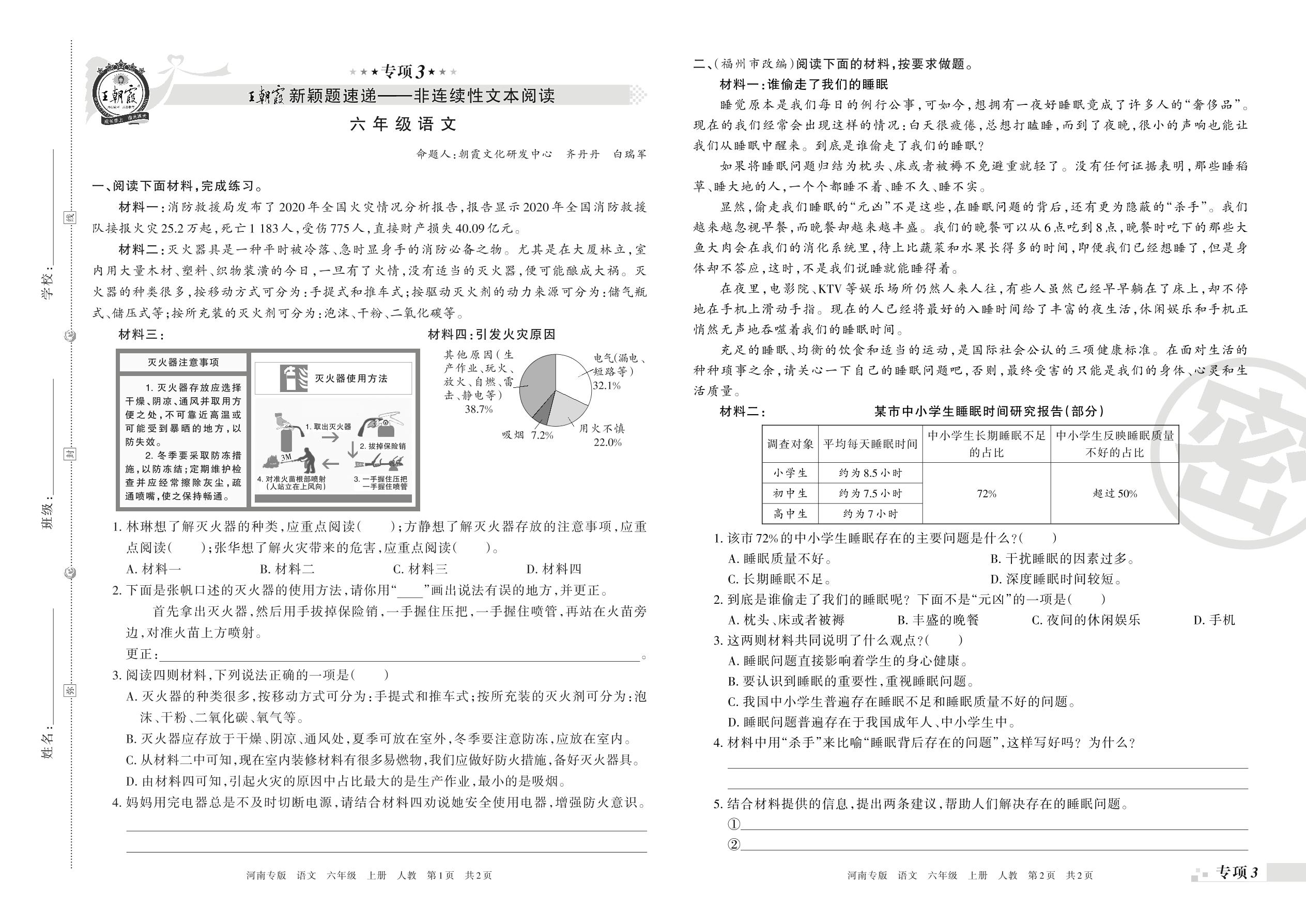 王朝霞期末专项卷——新颖题速递:非连续性文本阅读六年级上册语文(人教版)_R211225175211637【3】