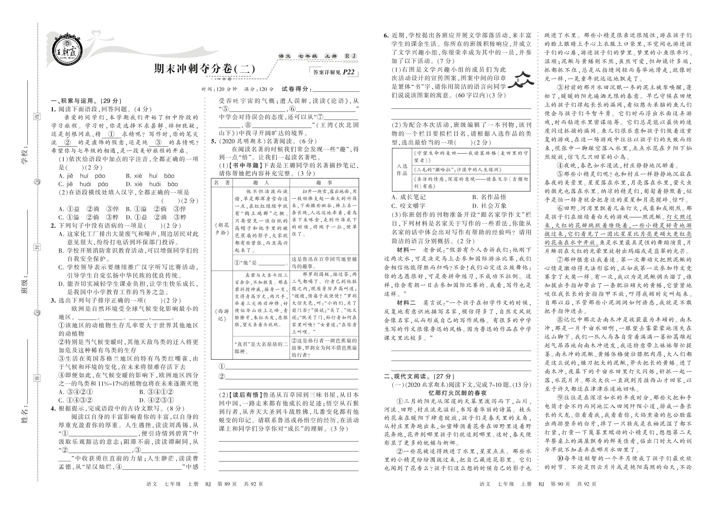 2021上册七年级语文人教版 期末冲刺夺分卷(二)