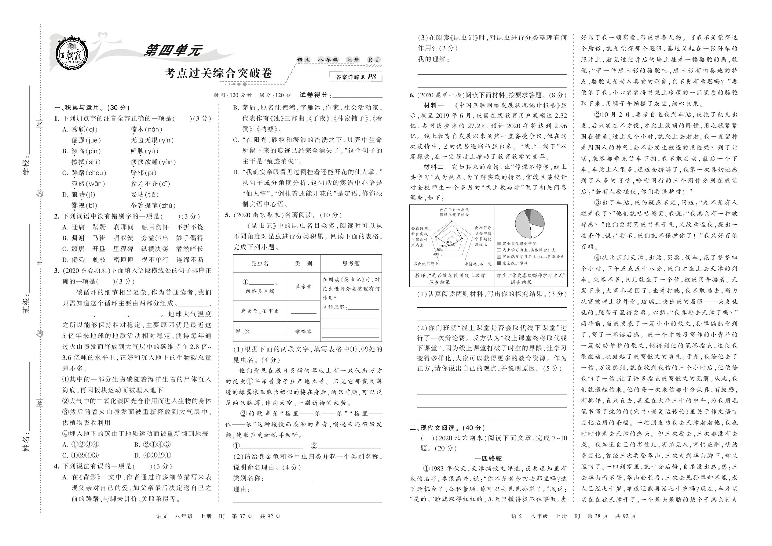 2021上册八年级语文人教版 第四单元 考点过关综合突破卷