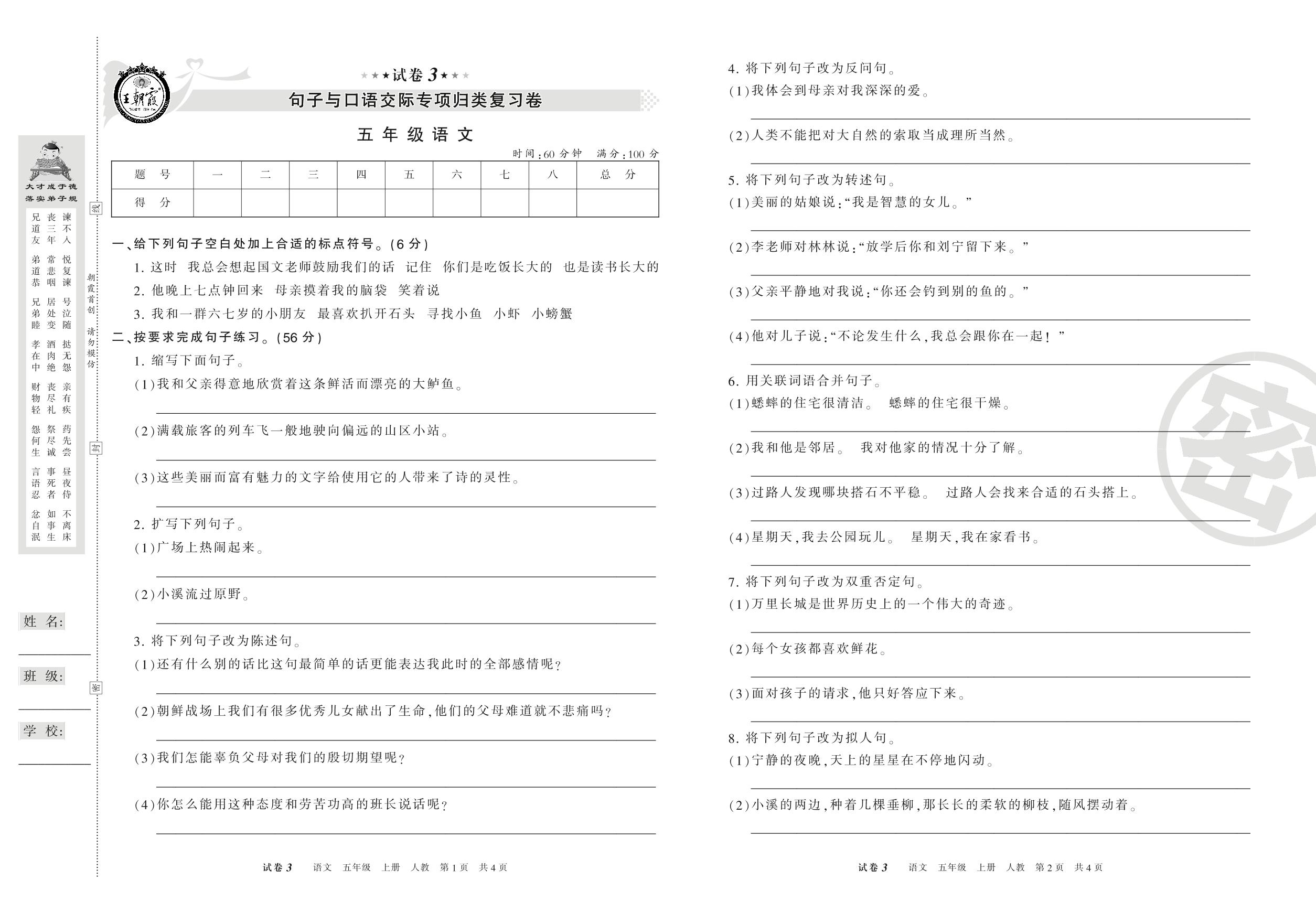 王朝霞期末专项卷五年级上册语文(人教版)_R210801221109【3】