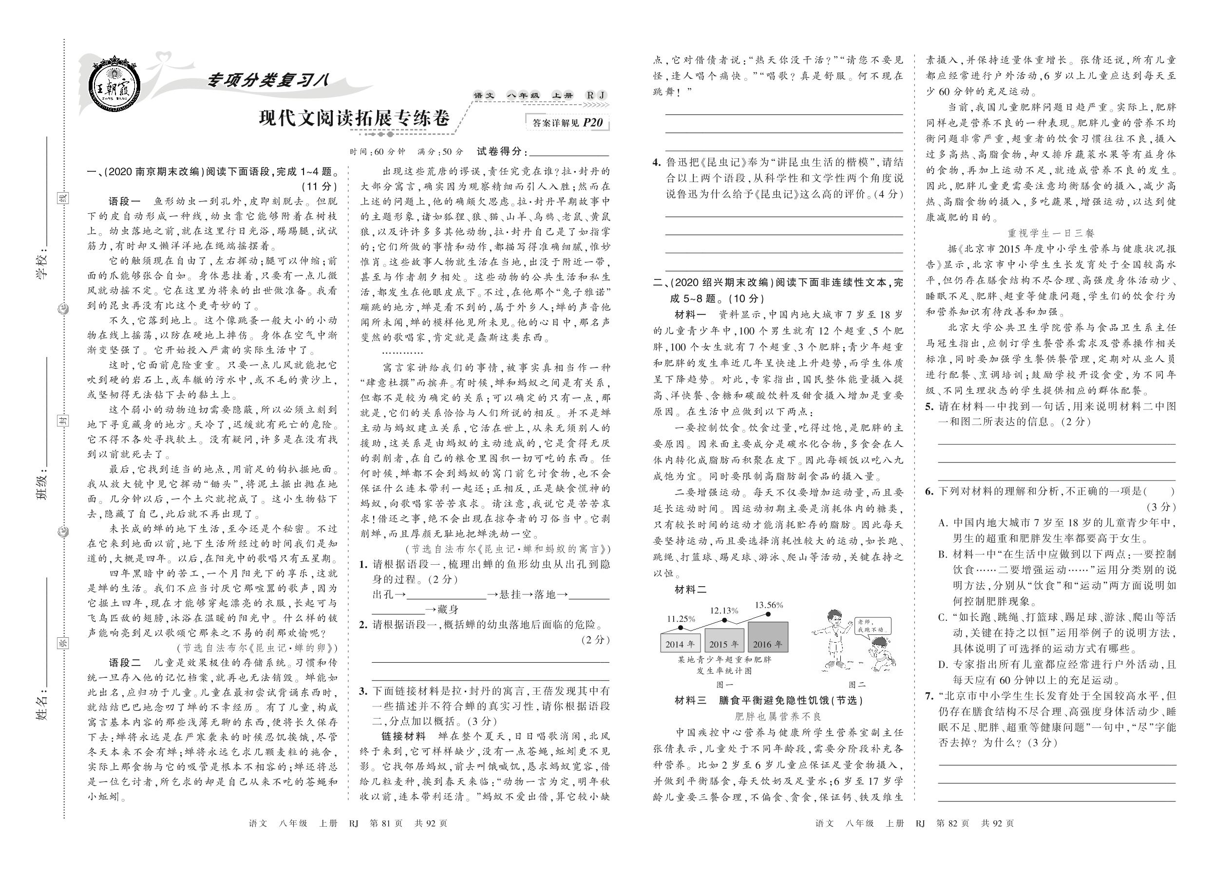 【易考专项】人教版·语文·八年级现代文阅读拓展专项训练