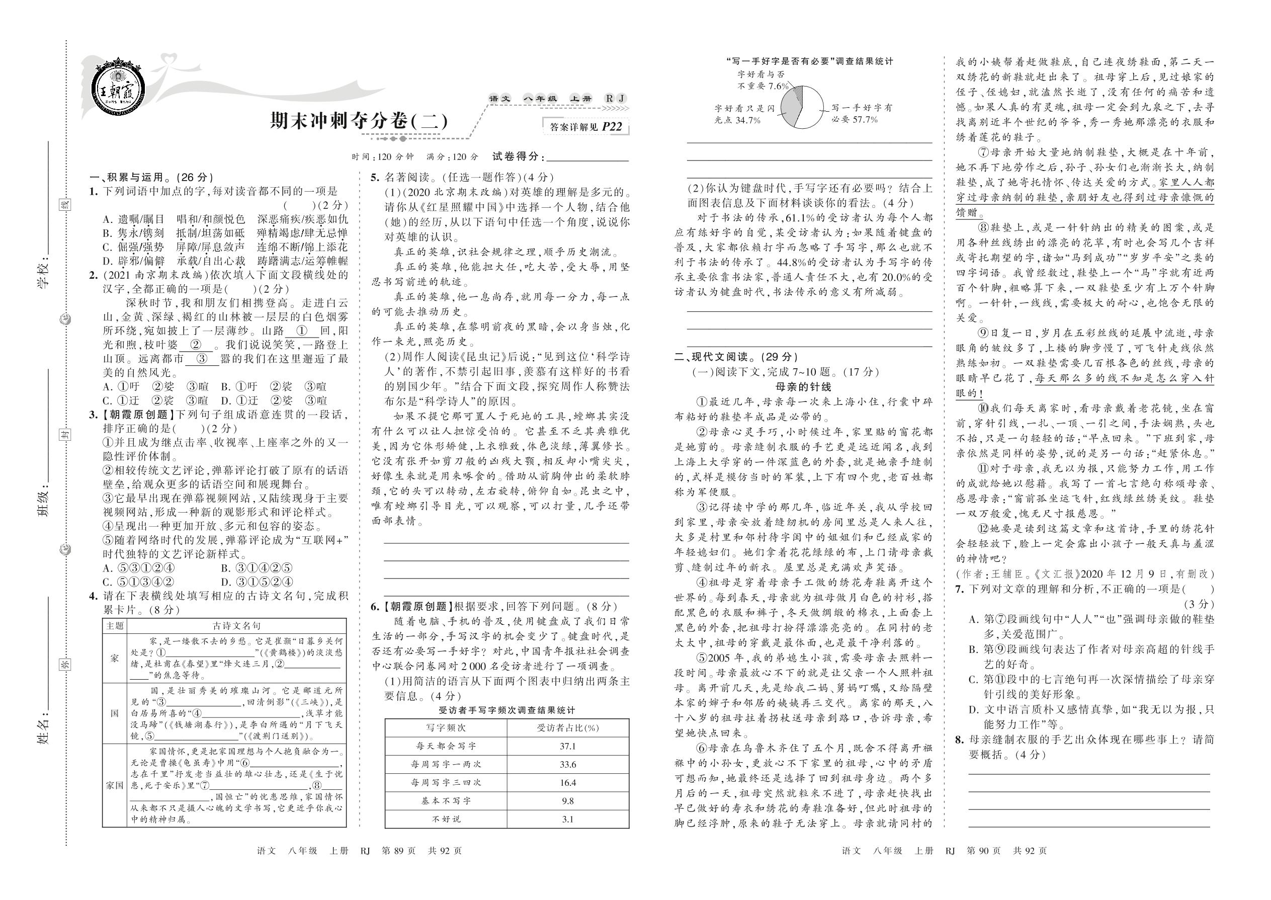 2021上册八年级语文人教版 期末冲刺夺分卷(二)