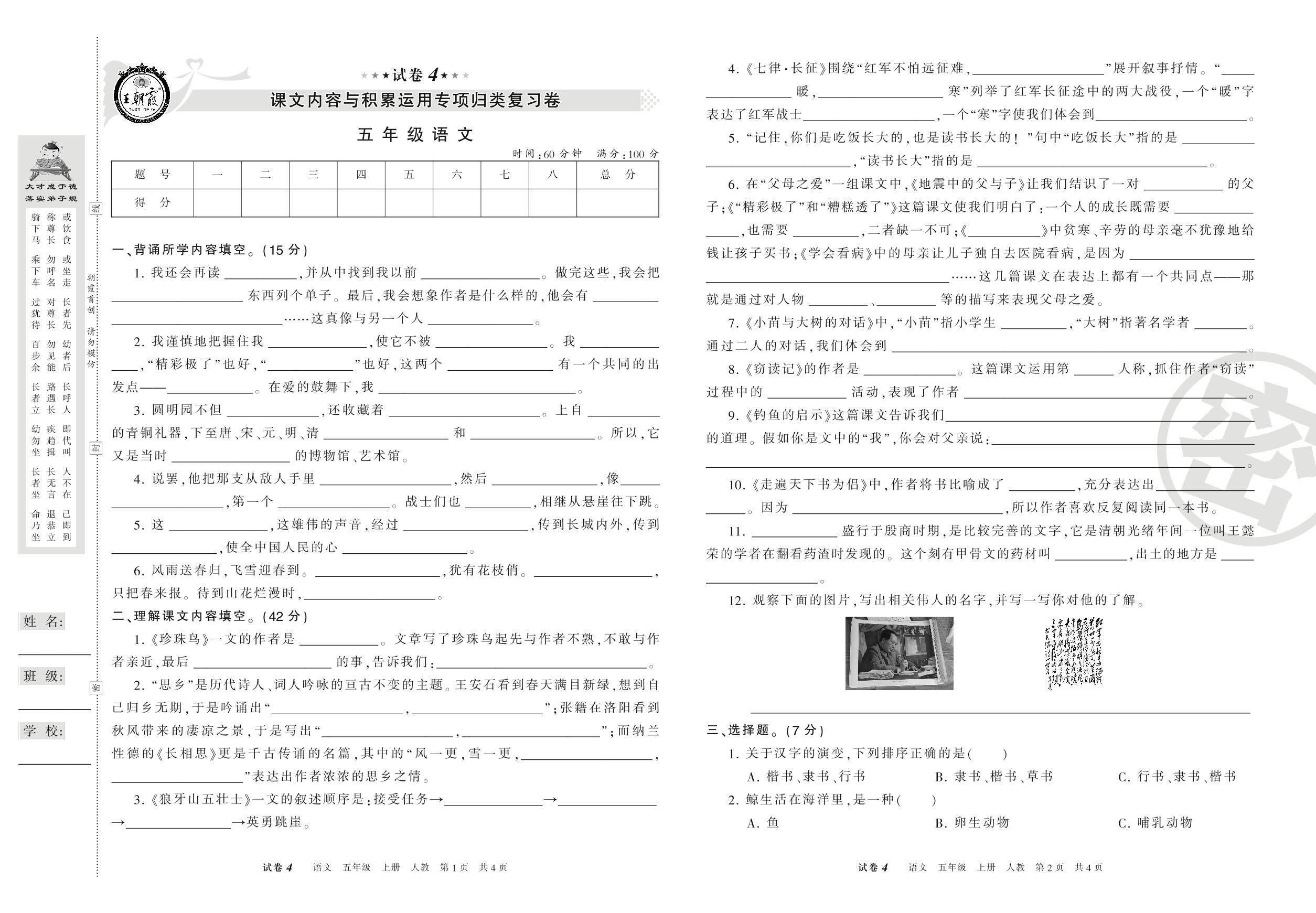 王朝霞期末专项卷五年级上册语文(人教版)_R210801221113【4】