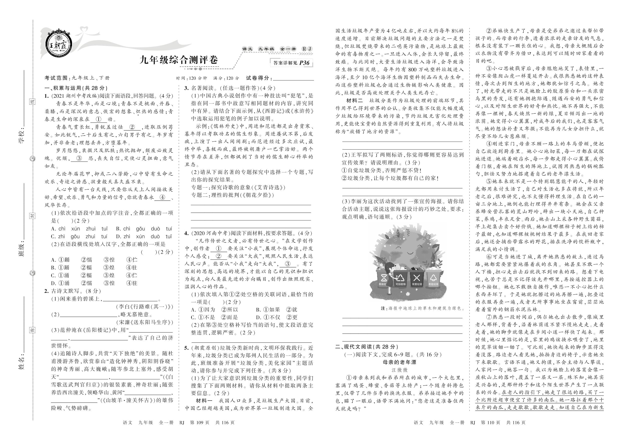 2021秋上册九年级语文人教版 九年级综合测评卷