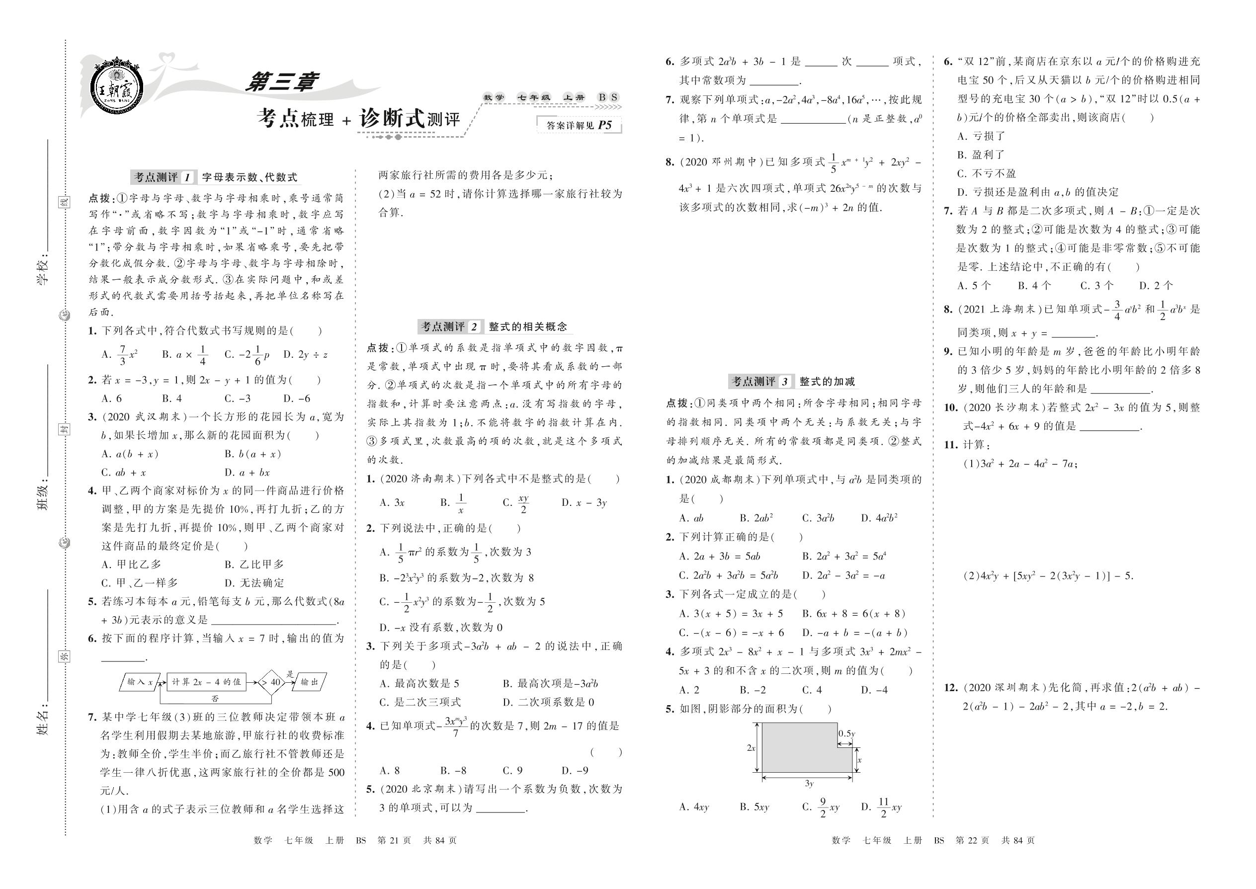 2021上册七年级数学北师版 第三章 考点梳理+诊断式测评