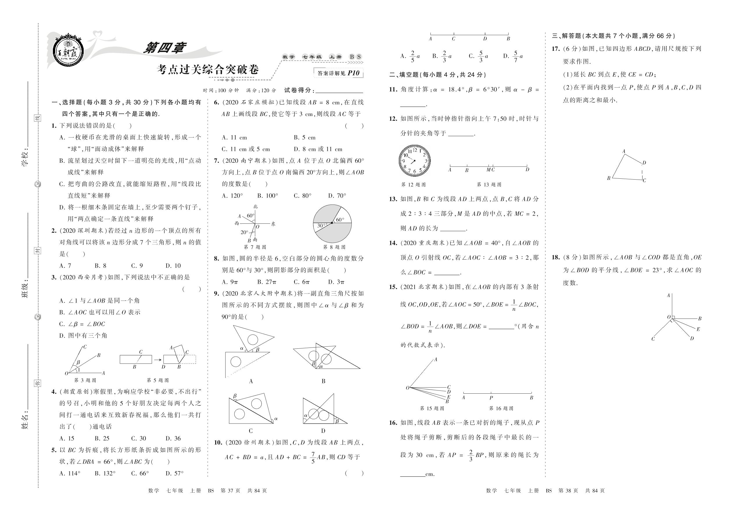 2021上册七年级数学北师版 第四章 考点过关综合突破卷