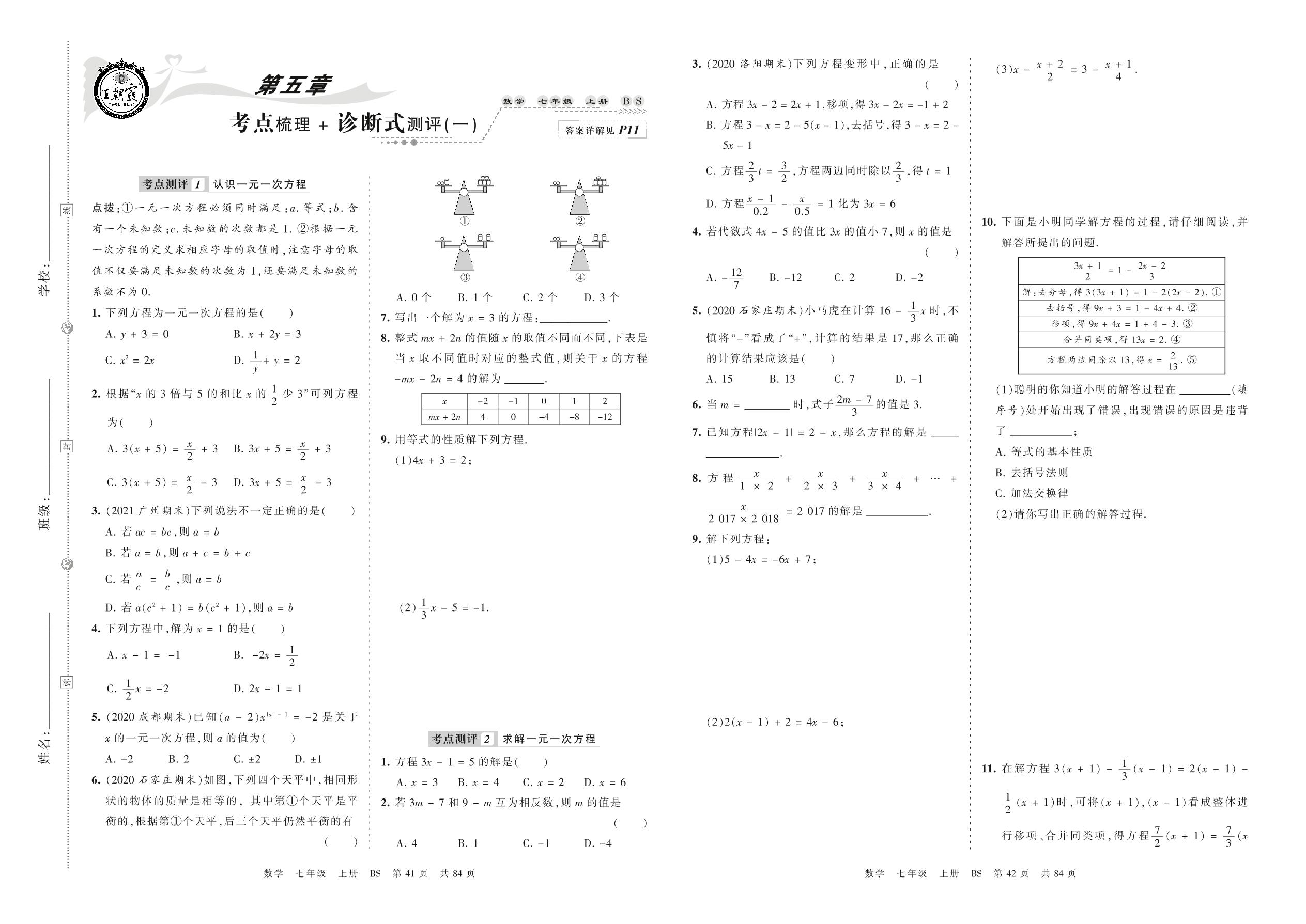 2021上册七年级数学北师版 第五章 考点梳理+诊断式测评(一)
