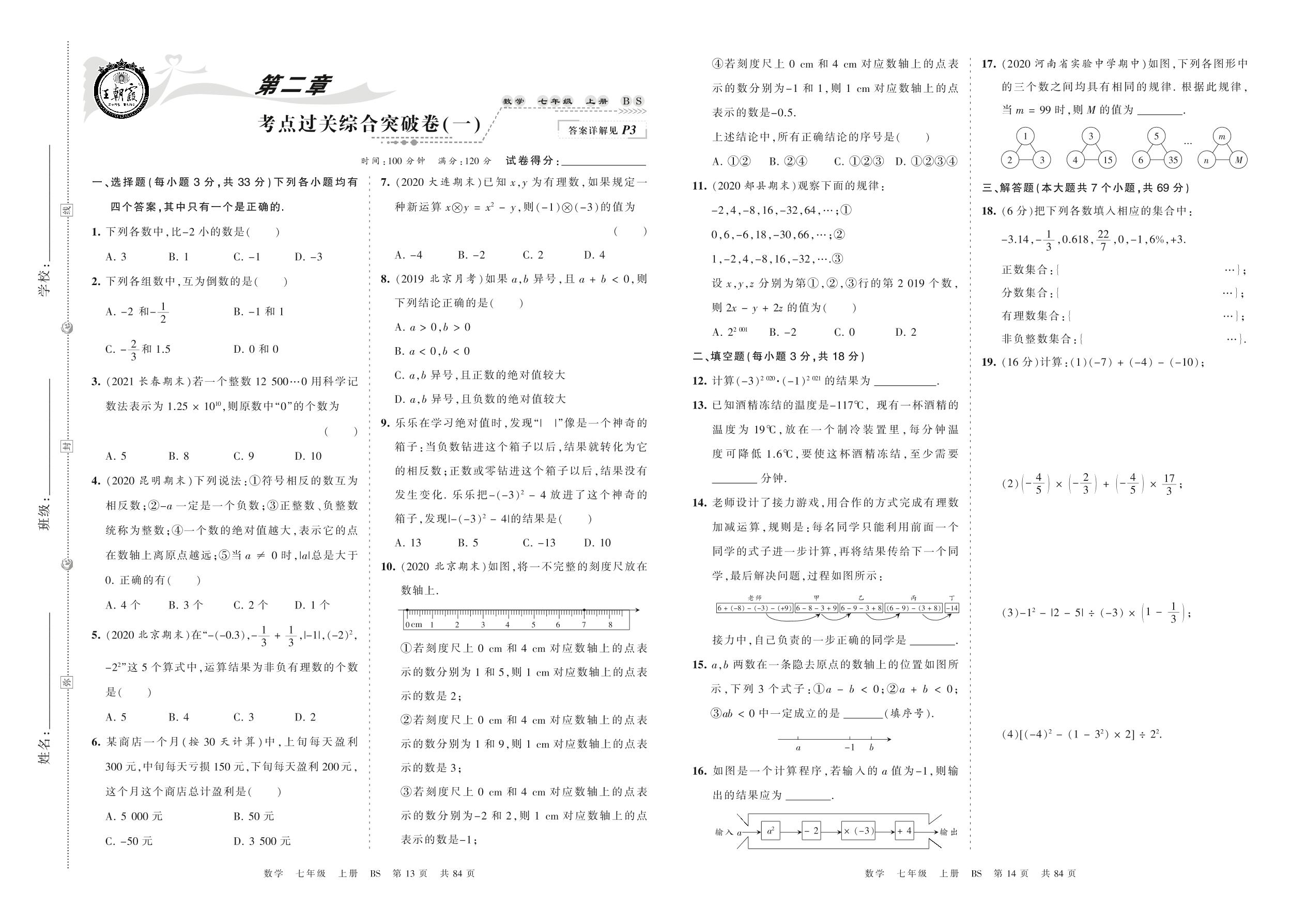 2021上册七年级数学北师版 第二章 考点过关综合突破卷(一)