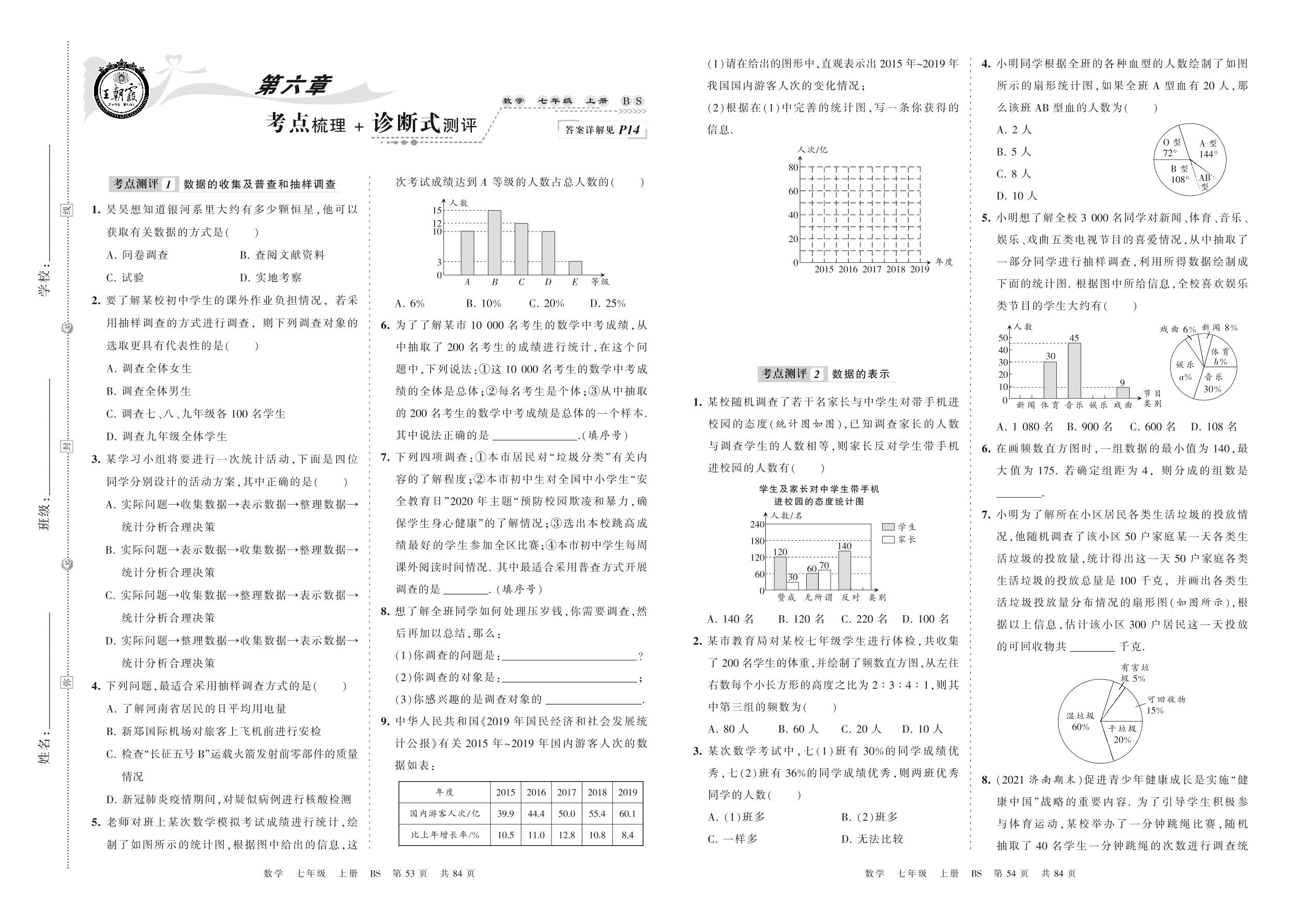 2021上册七年级数学北师版 第六章 考点梳理+诊断式测评