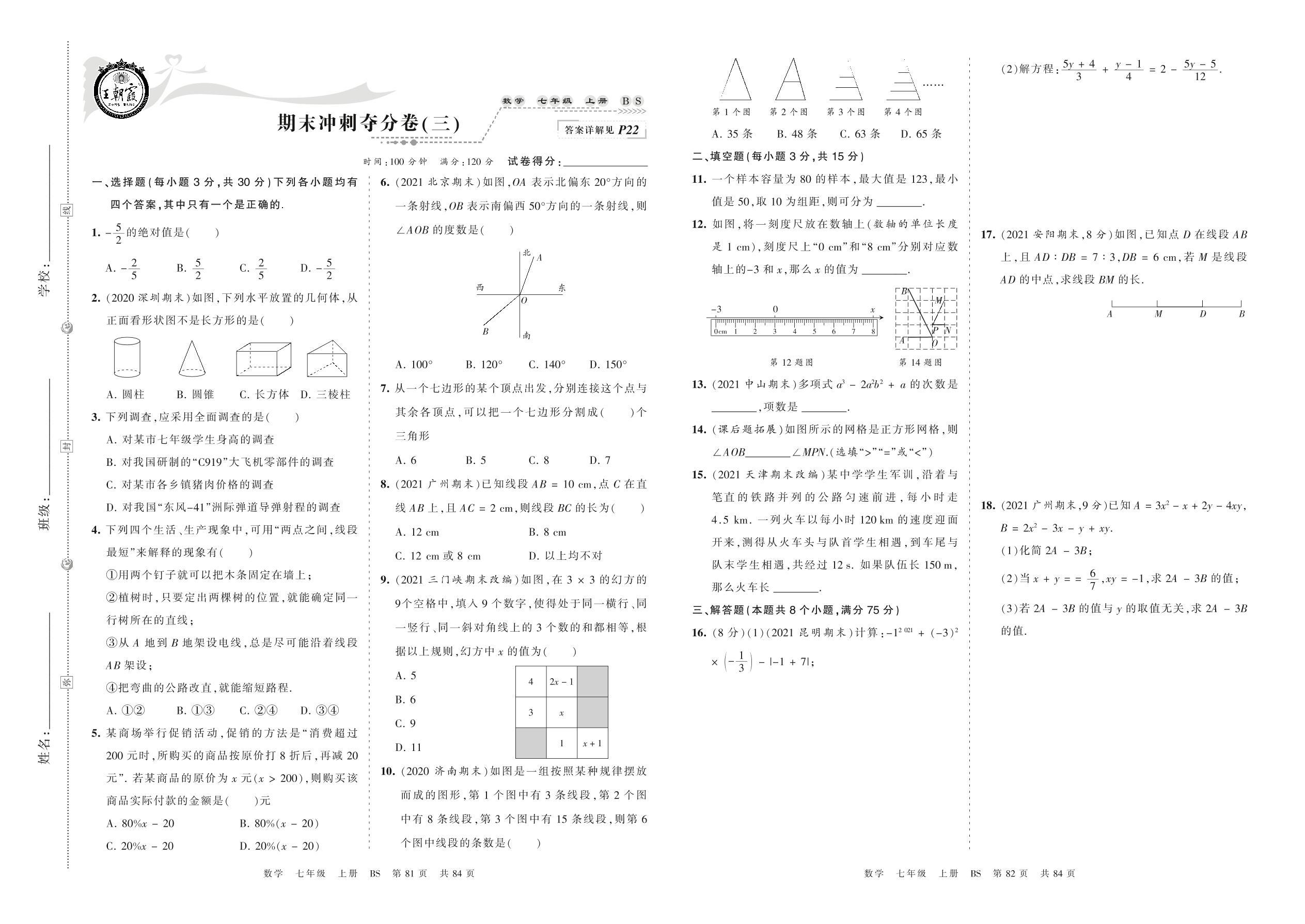 七年级数学北师版上册期末卷