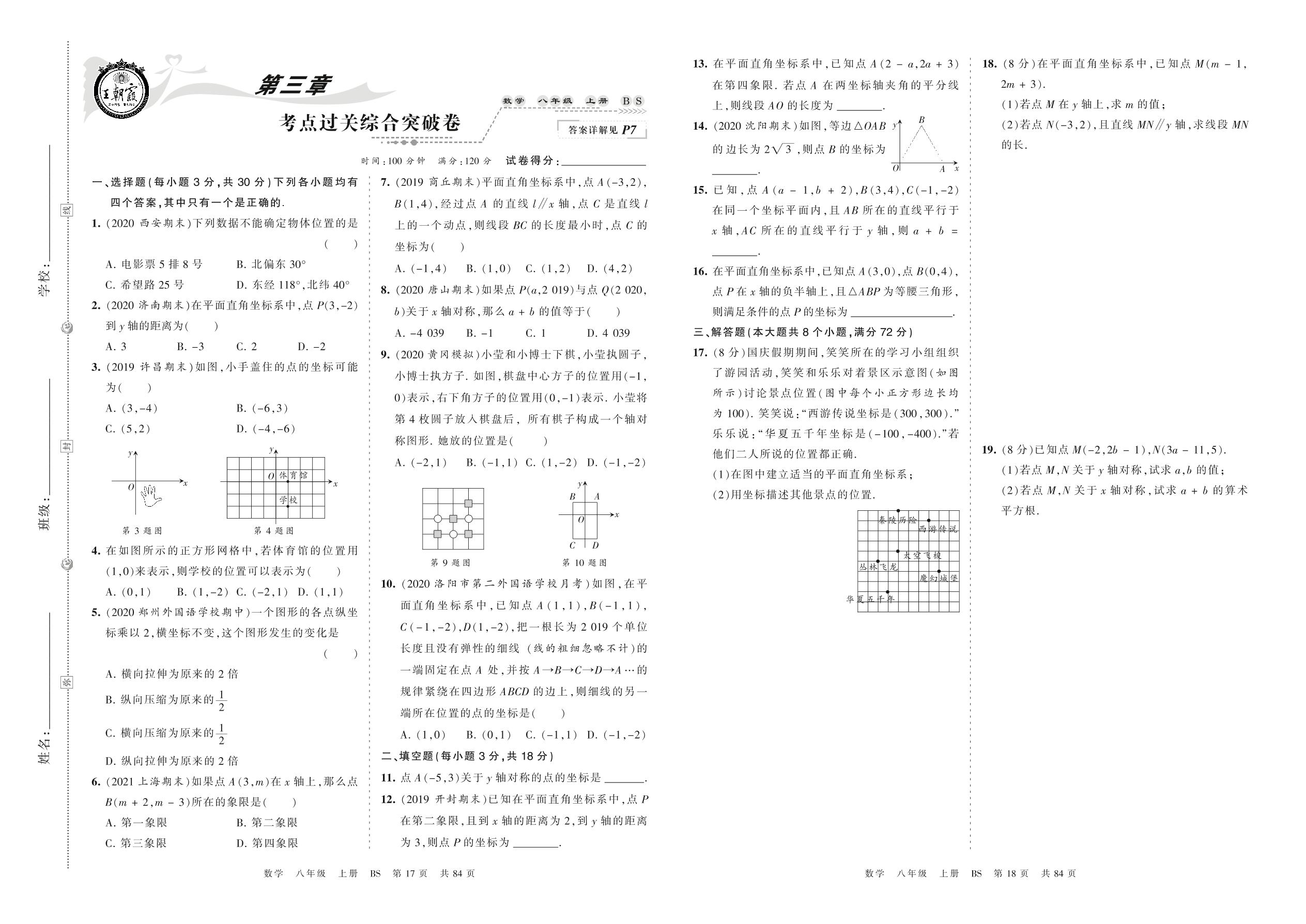 2021上册八年级数学北师版 第三章 考点过关综合突破卷