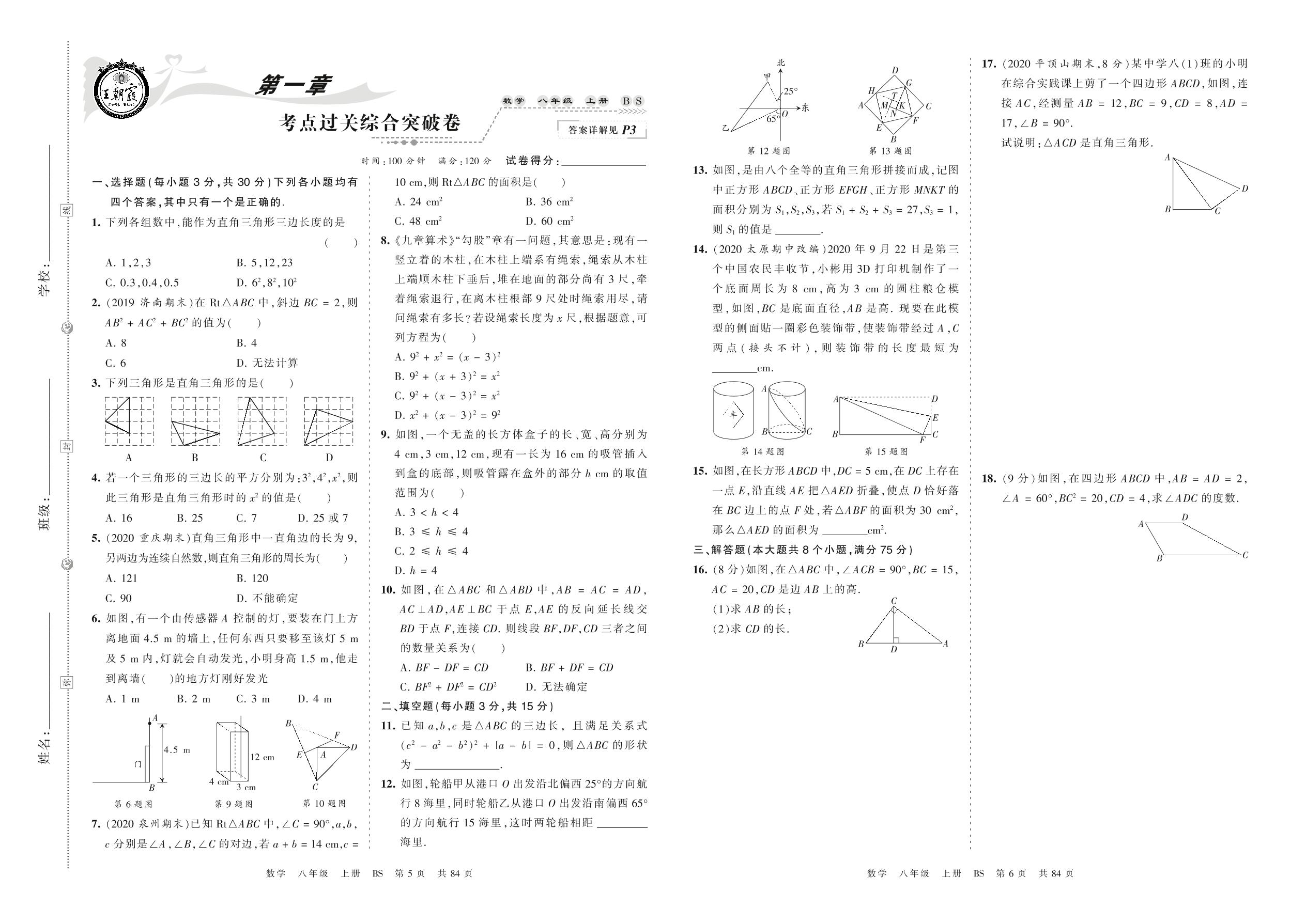 2021上册八年级数学北师版 第一章 考点过关综合突破卷