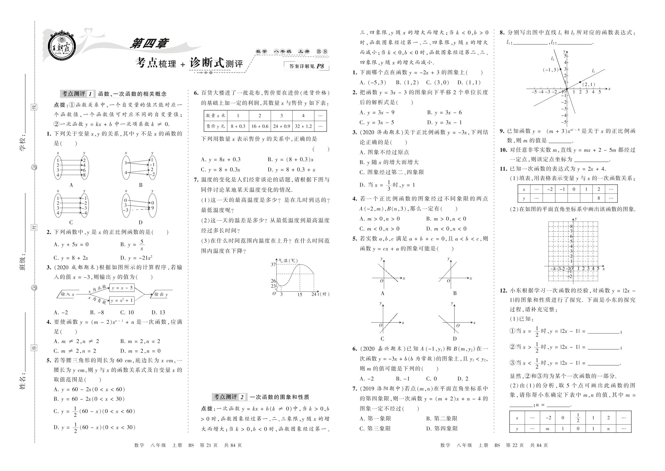 2021上册八年级数学北师版 第四章 考点梳理+诊断式测评