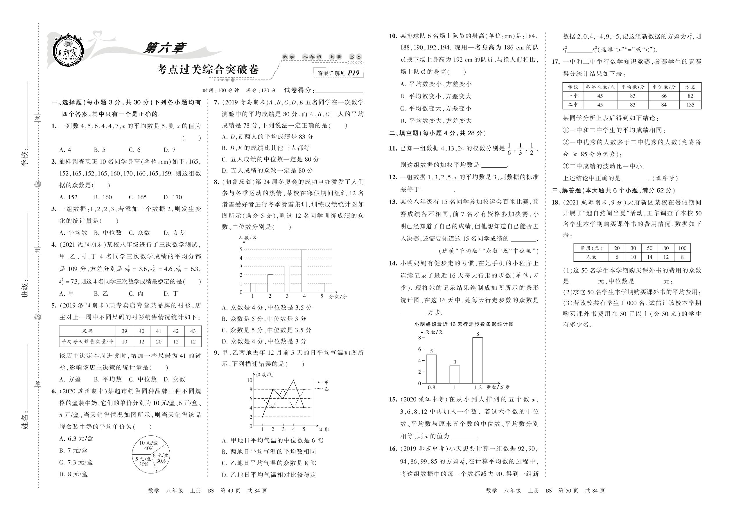 2021上册八年级数学北师版 第六章 考点过关综合突破卷