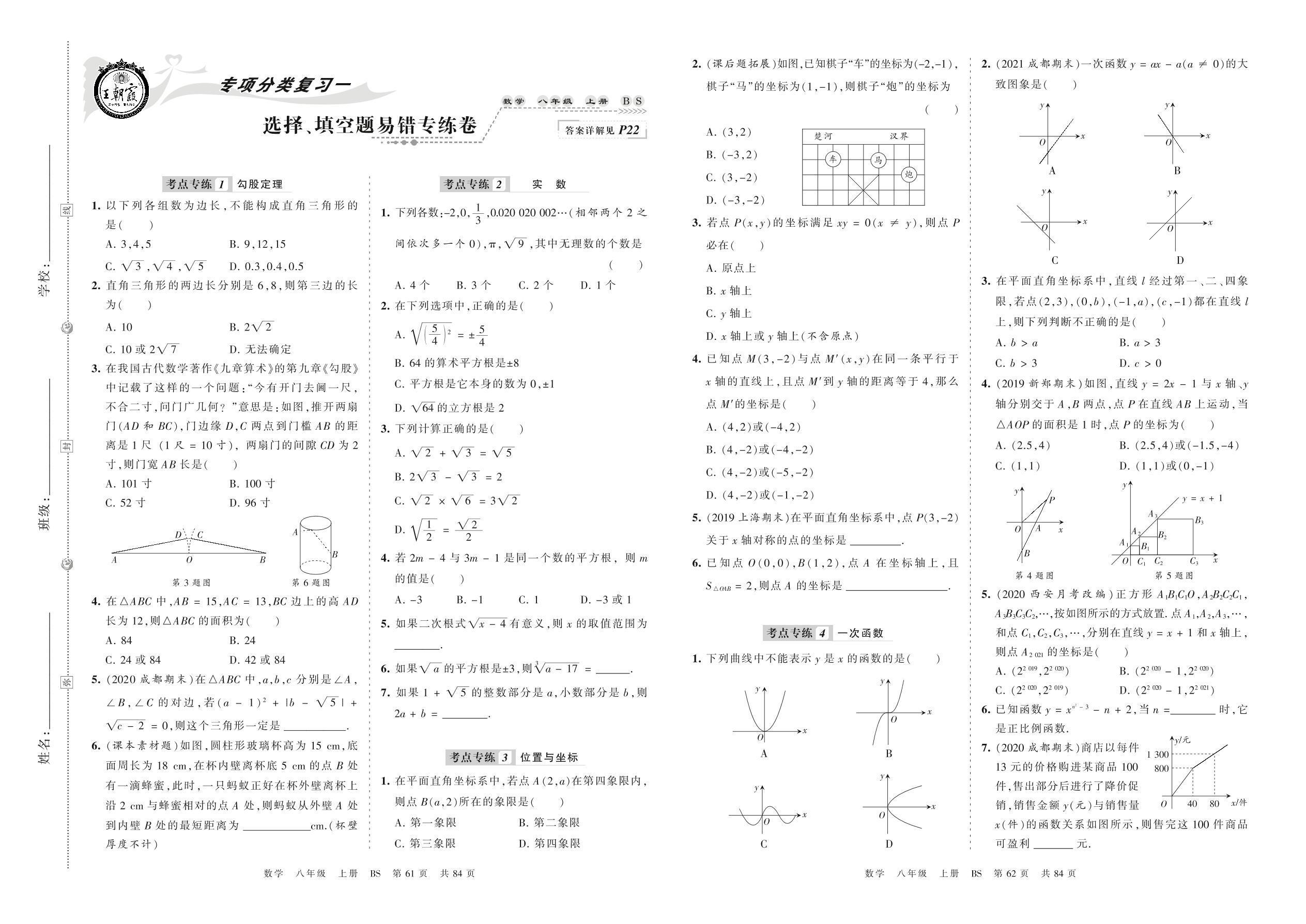 2021上册八年级数学北师版 选择、填空题易错专练卷