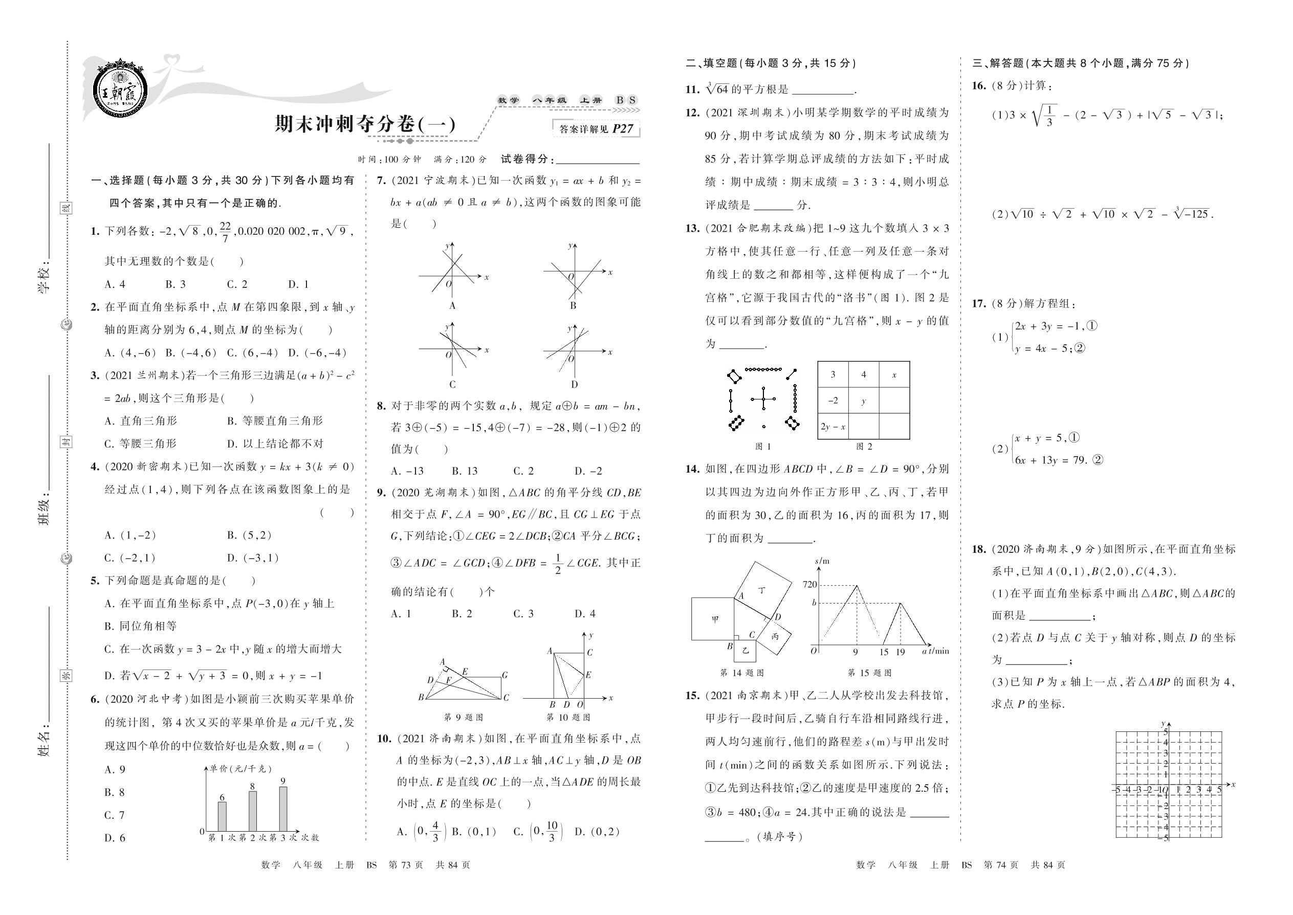 2021上册八年级数学北师版 期末冲刺夺分卷(一)