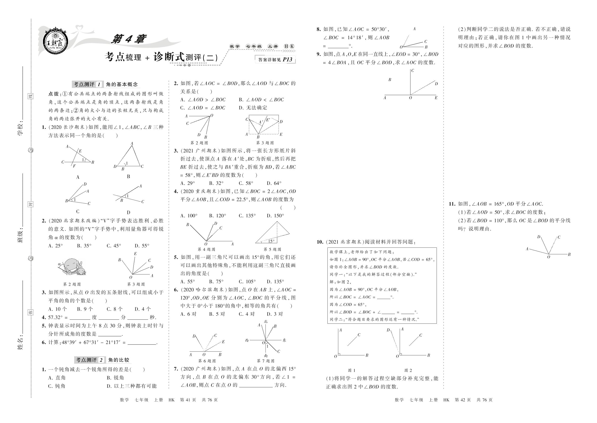 2021上册七年级数学沪科版 第4章 考点梳理+诊断式测评(二)