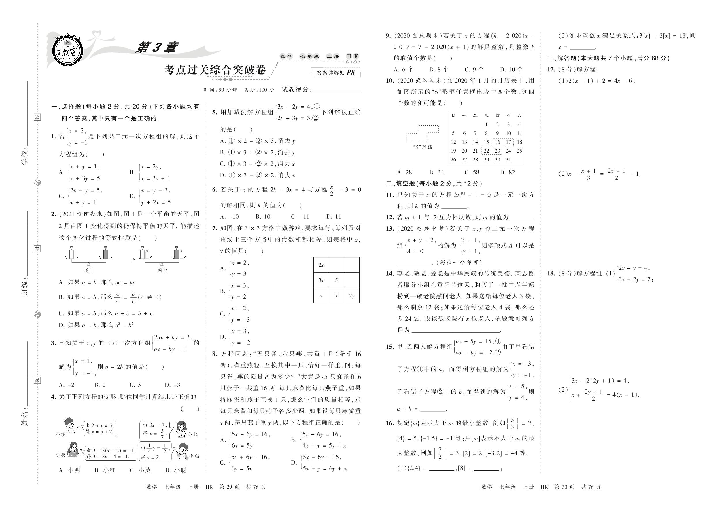 2021上册七年级数学沪科版 第3章 考点过关综合突破卷