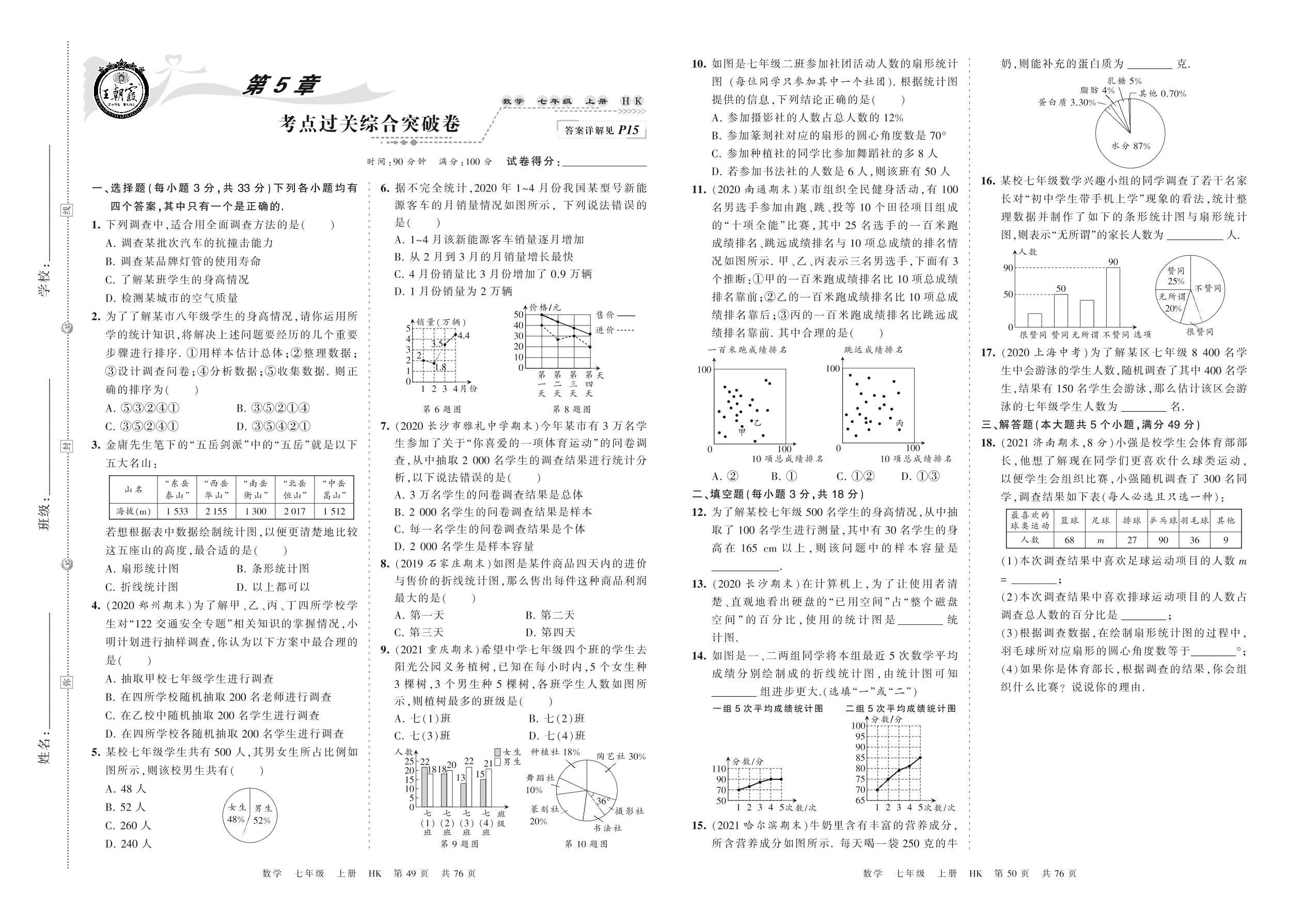 2021上册七年级数学沪科版 第5章 考点过关综合突破卷
