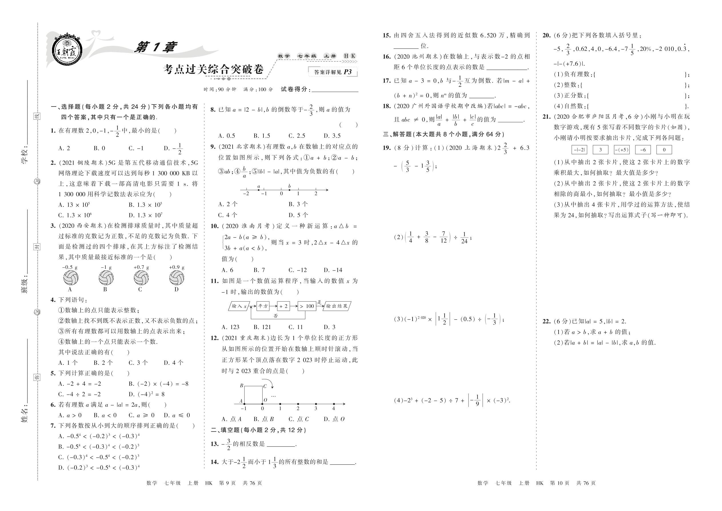 2021上册七年级数学沪科版 第1章 考点过关综合突破卷