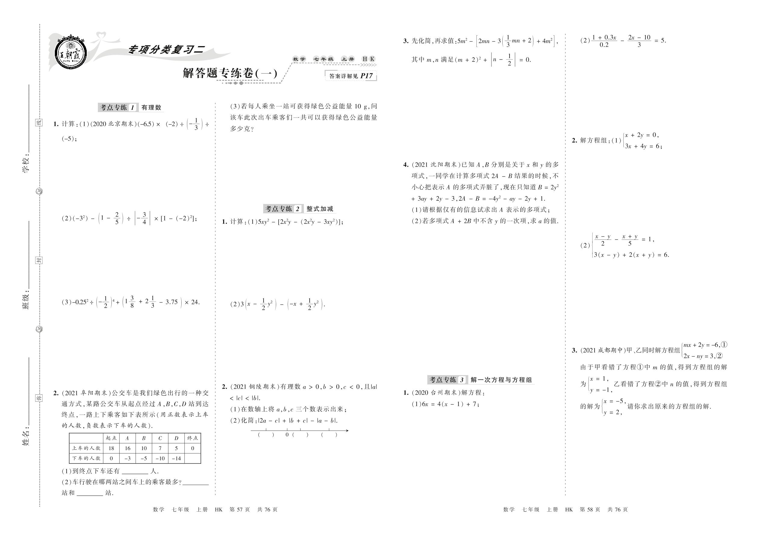 2021上册七年级数学沪科版 解答题专练卷(一)