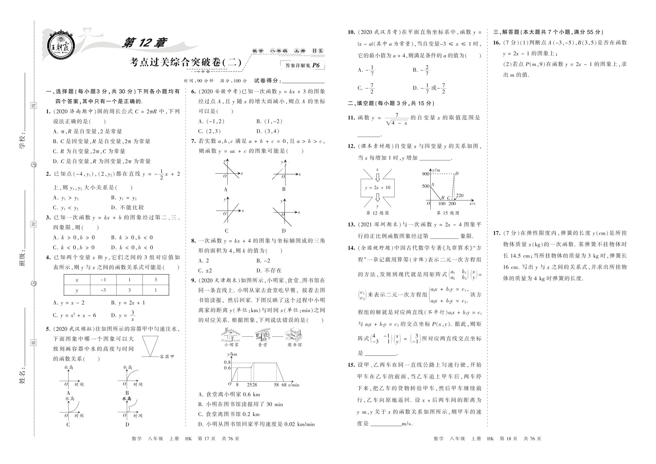 2021上册八年级数学沪科版 第12章 考点过关综合突破卷(二)