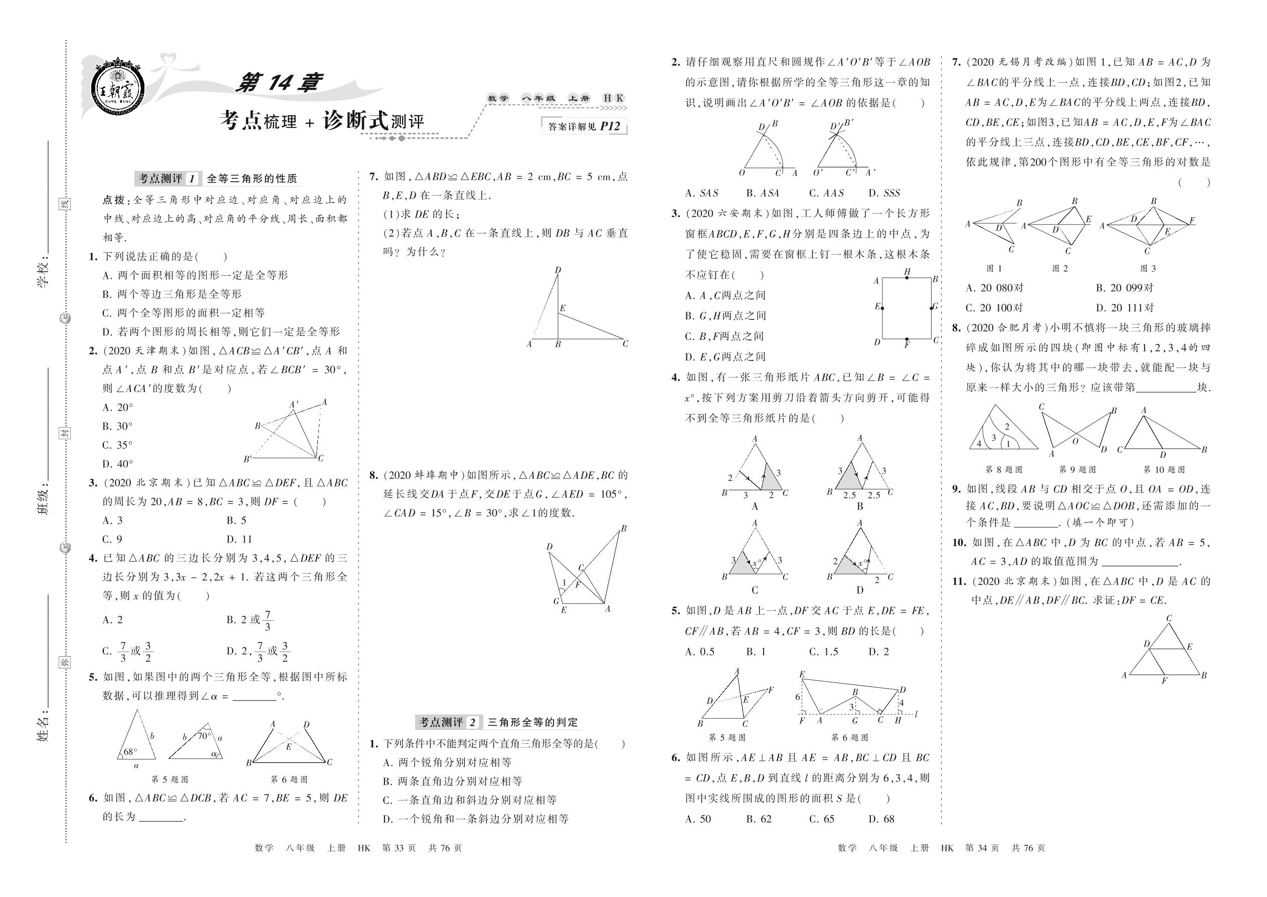 2021上册八年级数学沪科版 第14章 考点梳理+诊断式测评