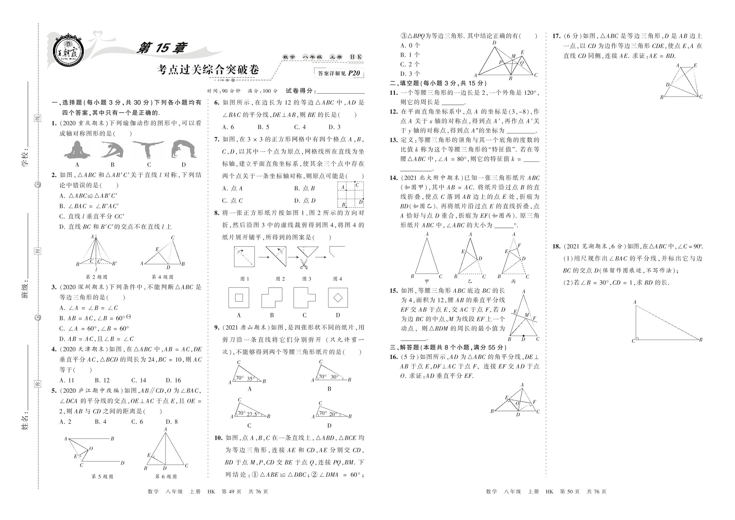 2021上册八年级数学沪科版 第15章 考点过关综合突破卷