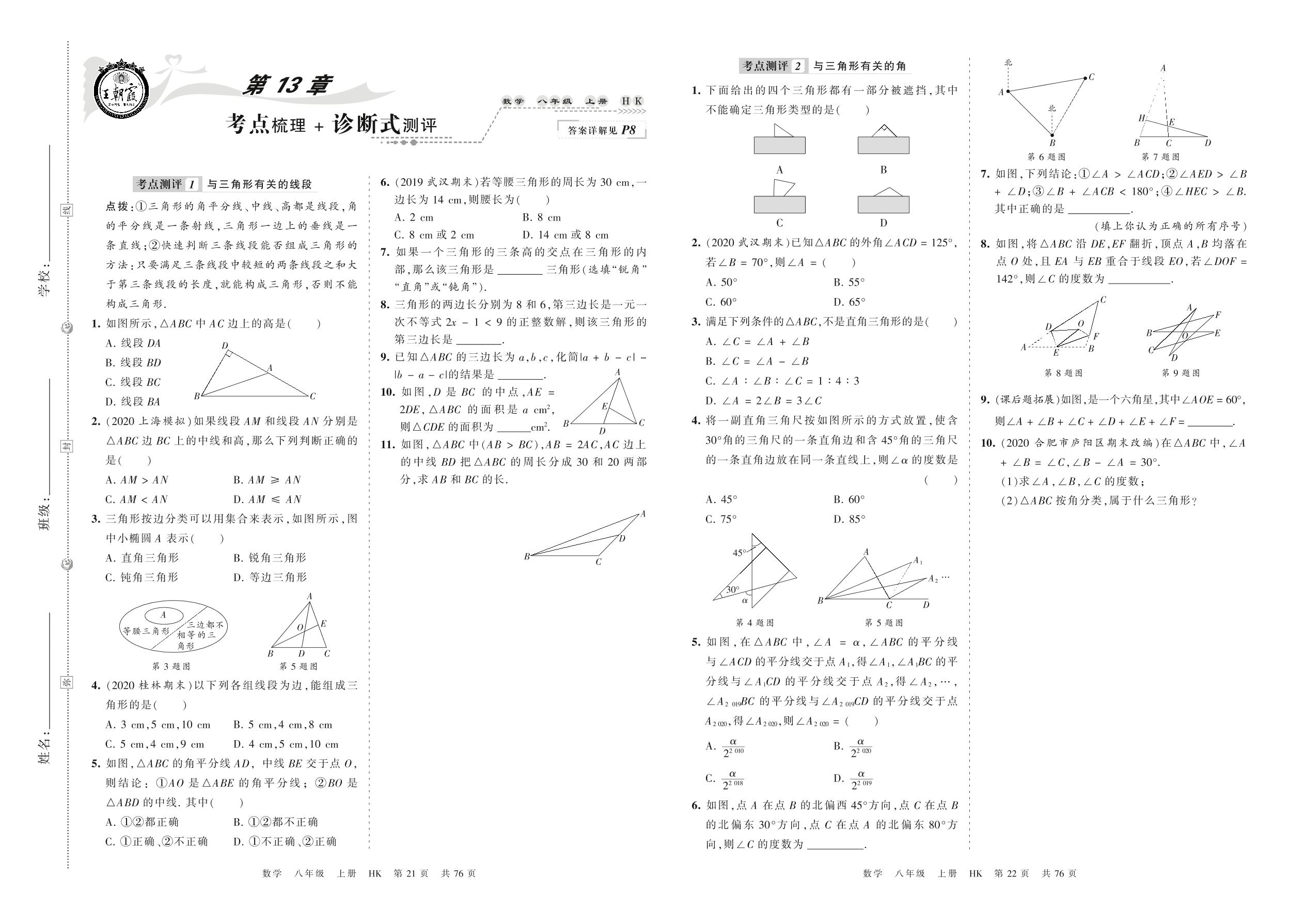 2021上册八年级数学沪科版 第13章 考点梳理+诊断式测评