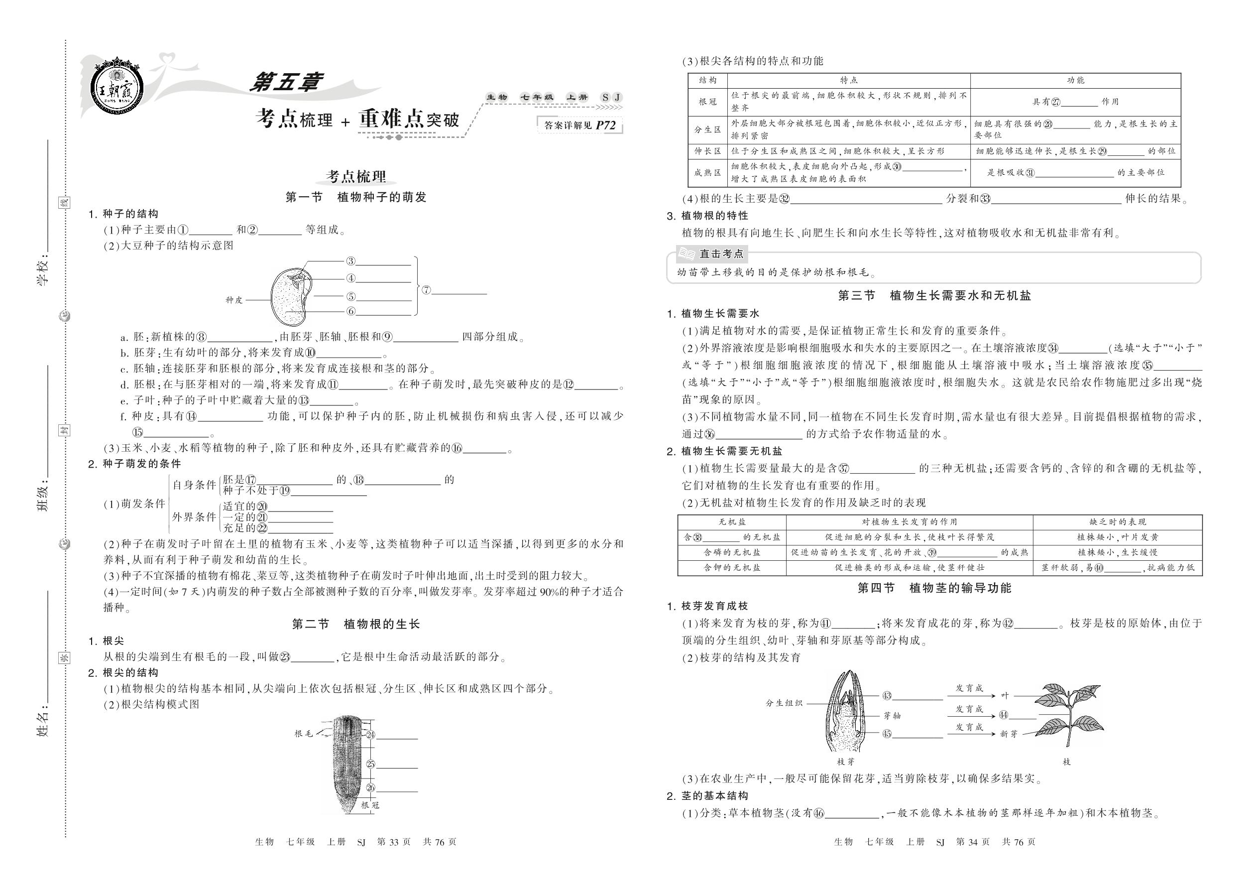 2021上册七年级生物苏教版 第五章 考点梳理 + 重难点突破