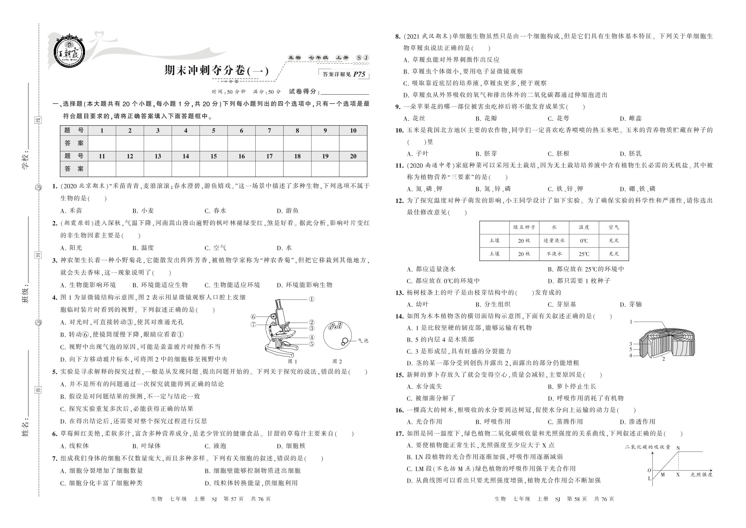 2021上册七年级生物苏教版 期末冲刺夺分卷(一)