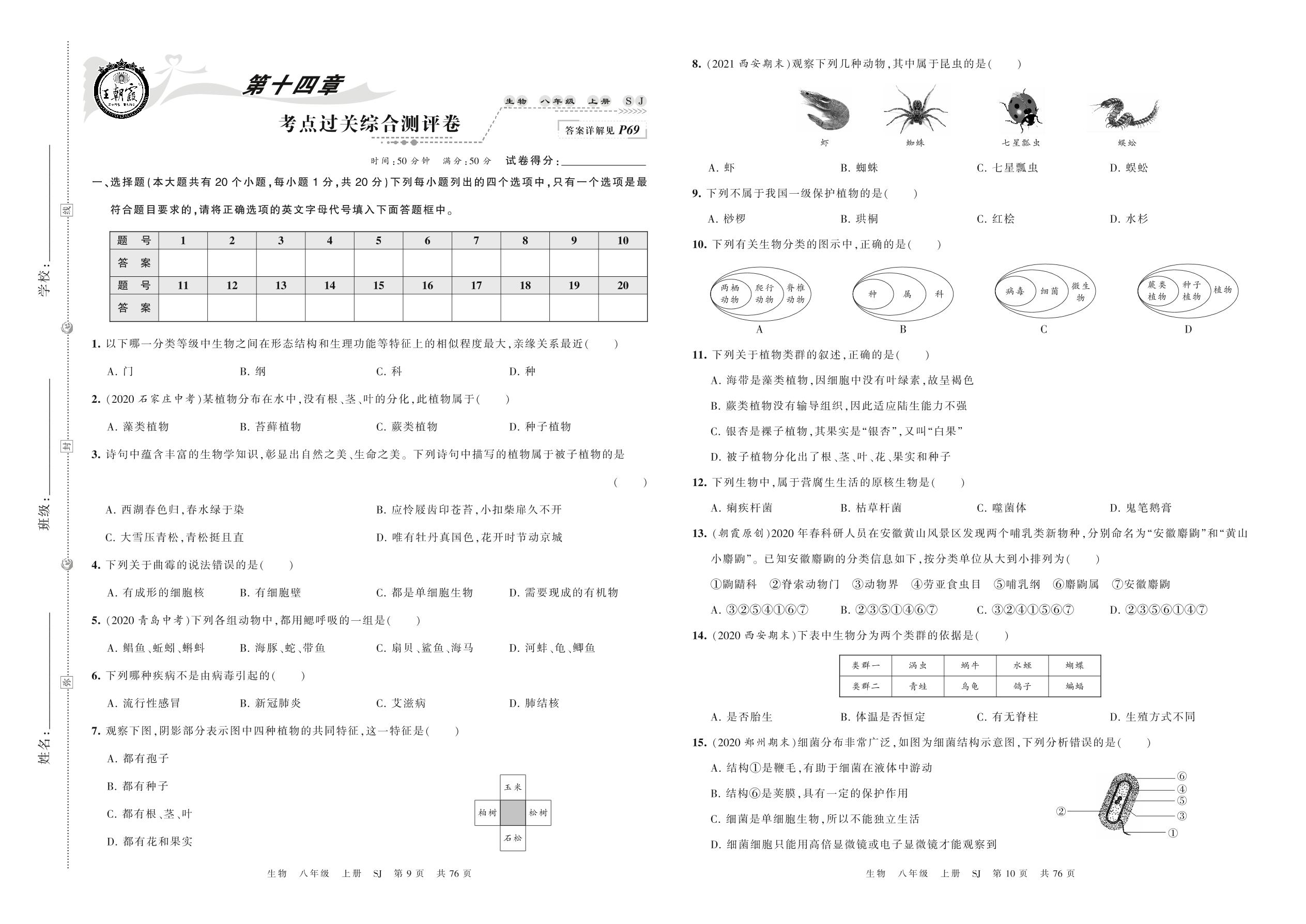 八年级生物苏教版上册单元卷
