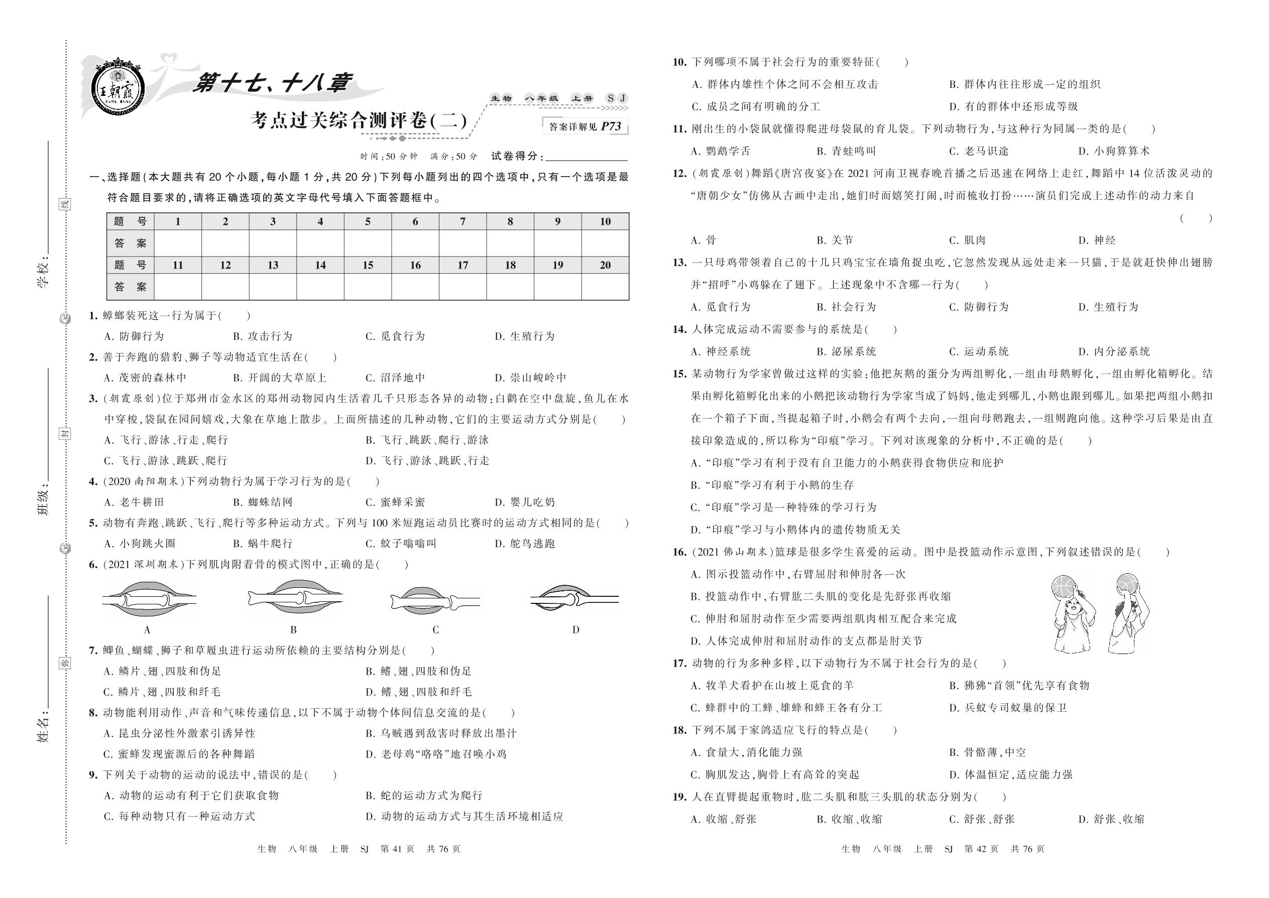 2021上册八年级生物苏教版 第十七、十八章 考点过关综合测评卷(二)