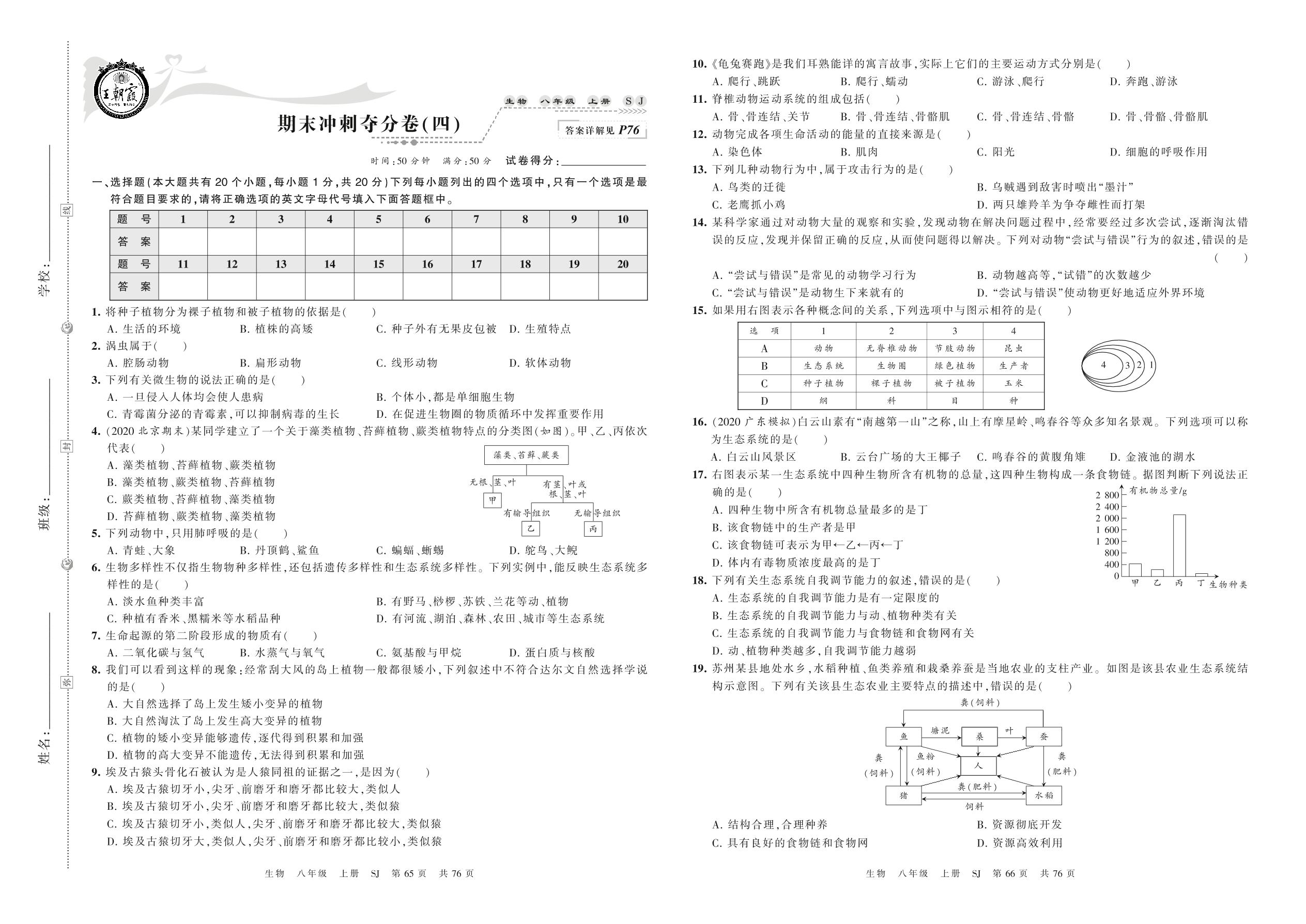 2021上册八年级生物苏教版 期末冲刺夺分卷(四)