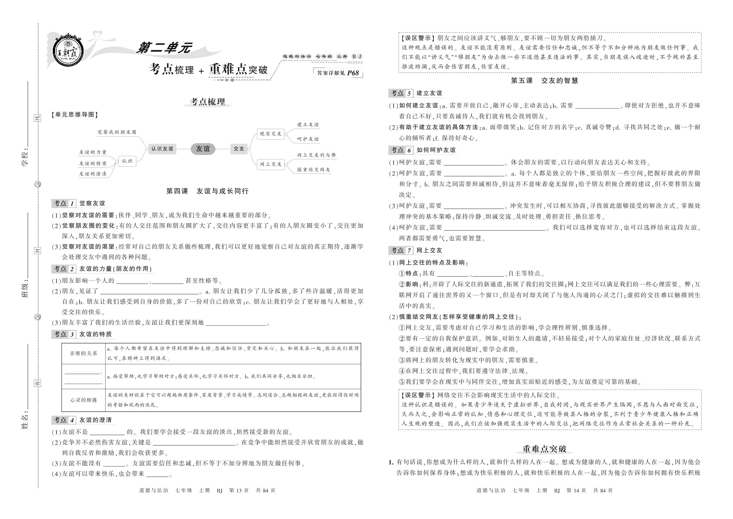2021上册七年级道德与法治人教版 第二单元 考点梳理+重难点突破