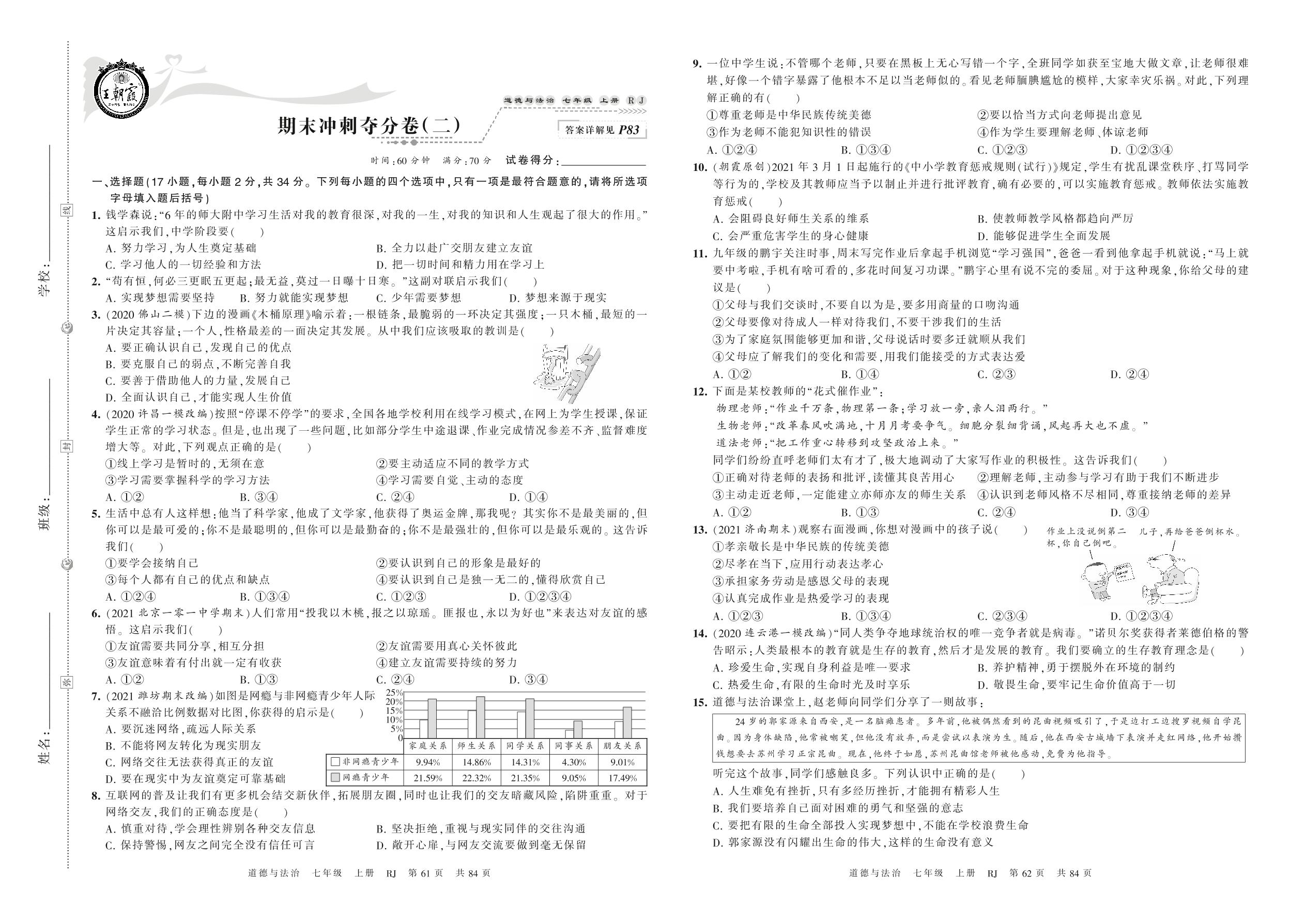 2021上册七年级道德与法治人教版 期末冲刺夺分卷(二)