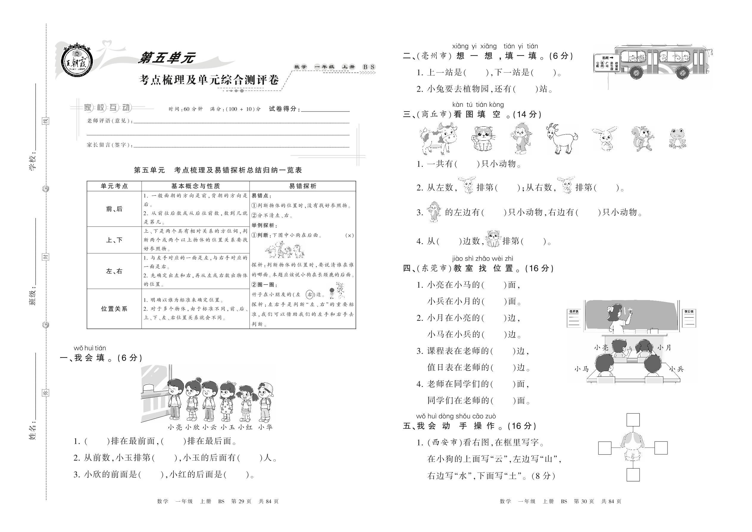 2021上册一年级数学北师版 第五单元 考点梳理及单元综合测评卷