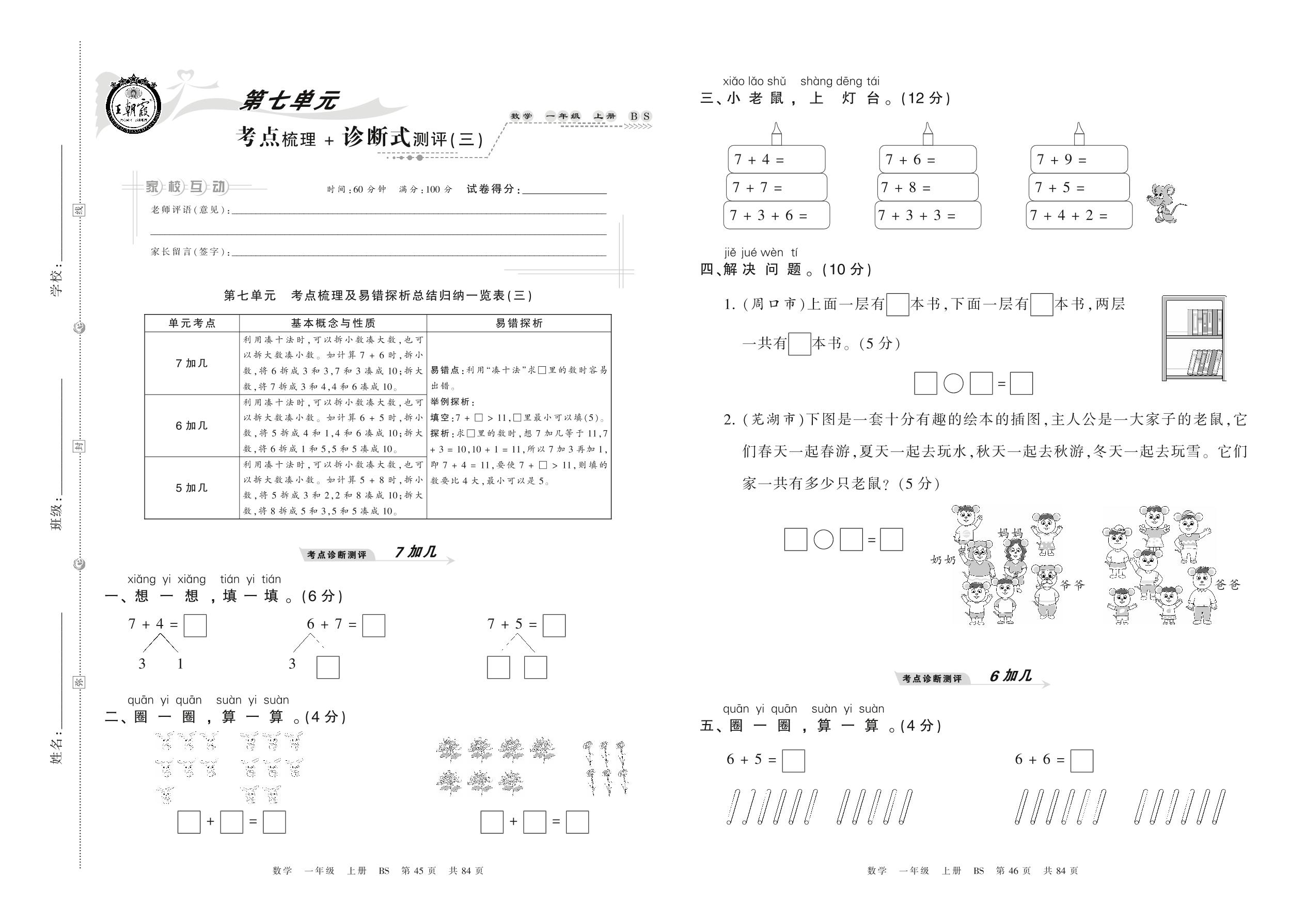 2021上册一年级数学北师版 第七单元 考点梳理 + 诊断式测评(三)