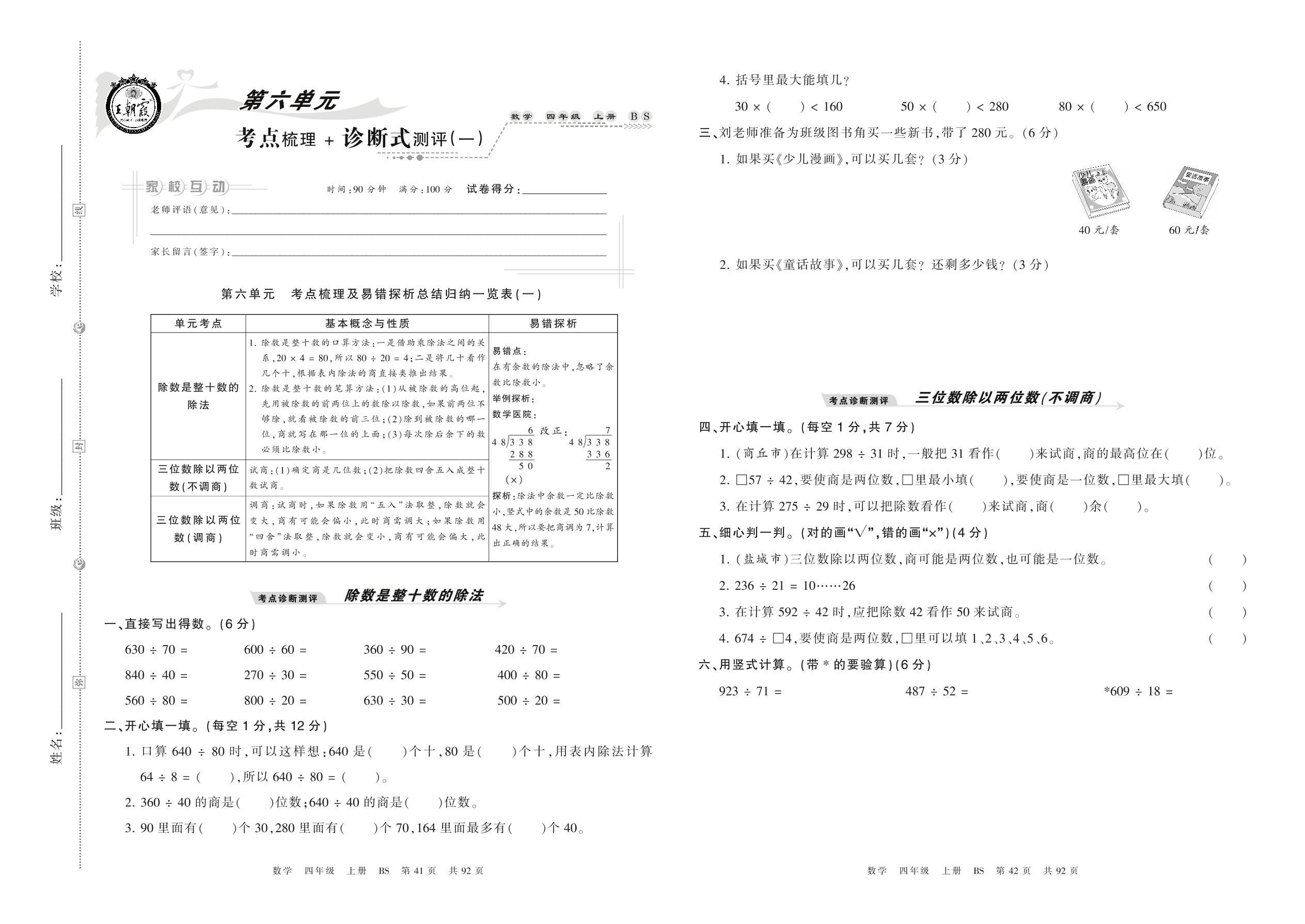 2021上册四年级数学北师版 第六单元 考点梳理 + 诊断式测评(一)