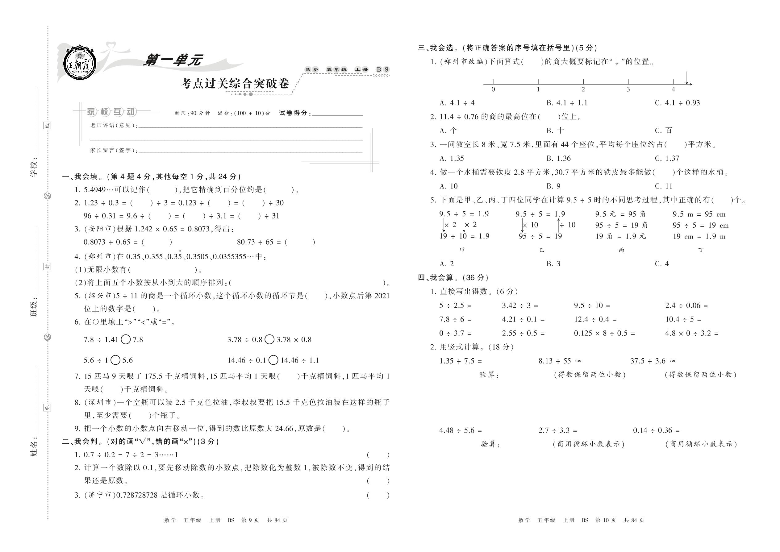 五年级数学北师版上册单元卷