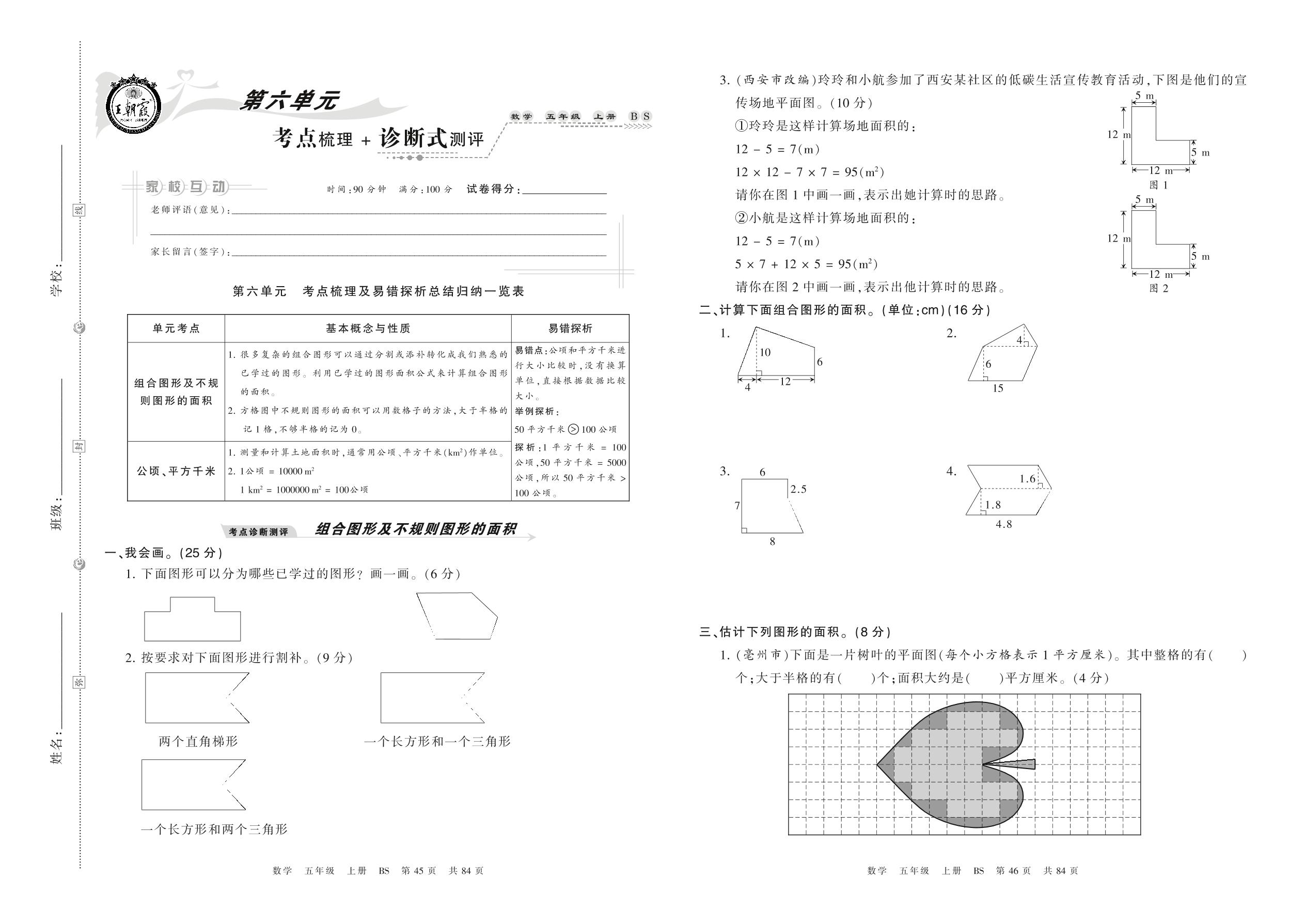 2021上册五年级数学北师版 第六单元 考点梳理+诊断式测评
